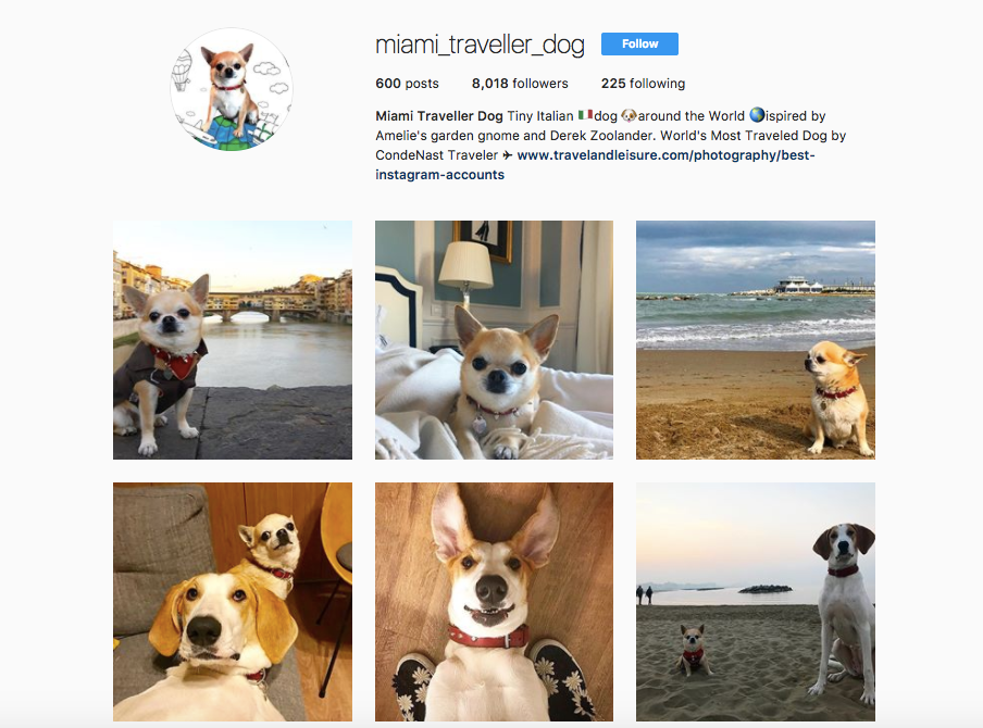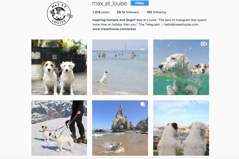 Max and Louise are inspiring humans and dogs one post at a time, as stated in their Instagram bio. The pair of Parson Russell Terriers hail from France, currently live in Sao Paola and have already traveled to the beaches of Lisbon, the Greek island of Mykonos, the Leaning Tower of Pisa and Miami Beach. Based on their Instagram and blog page, these pups never miss an adventure with their owner Thiago Ferreira. What's more, their IG feed serves as a guide through some of the best dog-friendly hotels and beaches.