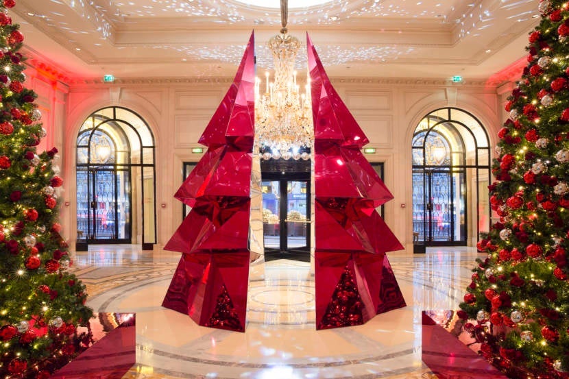 "When thinking about Christmas this year, I absolutely wanted to offer our guests an interactive experience, reinventing tradition and bringing real flowers for the first time to our renowned Christmas decoration," Leatham said in a statement. The mirrored Christmas sculptures around the hotel reflect the various arrangements, which give visitors a sense of eternity.