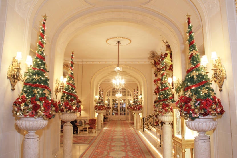 Nothing tops Christmas at the Four Seasons in Paris. The hotel attracts visitors and tourists from around the globe to come in and take a picture of the lobby turned floral wonderland. The flowers are so fanciful and ornate that they're more like art installations — that get changed regularly — than floral arrangements. Artistic Director of the Four Seasons Paris and florist to the stars, Jeff Leatham, transforms the lobby and surrounding areas year after year.