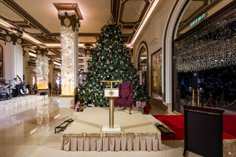 The Peninsula Hong Kong not only decorates its lobby with a beautiful tree, lights and ornaments, but the team turns the holiday celebration into a charitable cause for Make-A-Wish Hong Kong. Together with the Peninsula Hotels from around the world, the hotel chain founded Trees of Hope, which has raised over $1 million at the Hong Kong location alone. The hotel begins the holiday festivities with Santa Claus pushing the magic lever lighting up the lobby with festive cheer. Santa Claus is joined by the Peninsula Pages, who sing along as the Christmas festivities are unrolled.