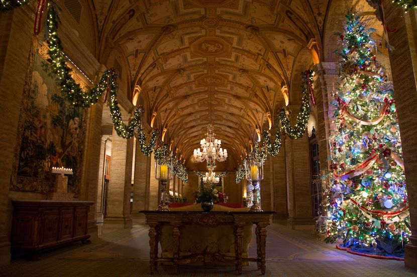What's better than Christmas? Christmas at the beach. This iconic luxury hotel in Palm Beach spares nothing when it comes to decorating the hotel. The 100 massive palm trees that line the driveway are wrapped with lights and the inside is decorated with garland, lights, trees and everything in between. There are two 18-foot-tall Christmas trees in the majestic lobby. In total, The Breakers uses 150,000 lights, 3,500 ornaments and over 9,000 feet of ribbon. This coastal retreat is perfect for beach-dwellers who want to immerse themselves in holiday cheer.
