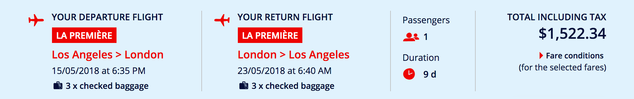 Los Angeles (LAX) to London (LHR) for $1,523 round-trip in La Première: