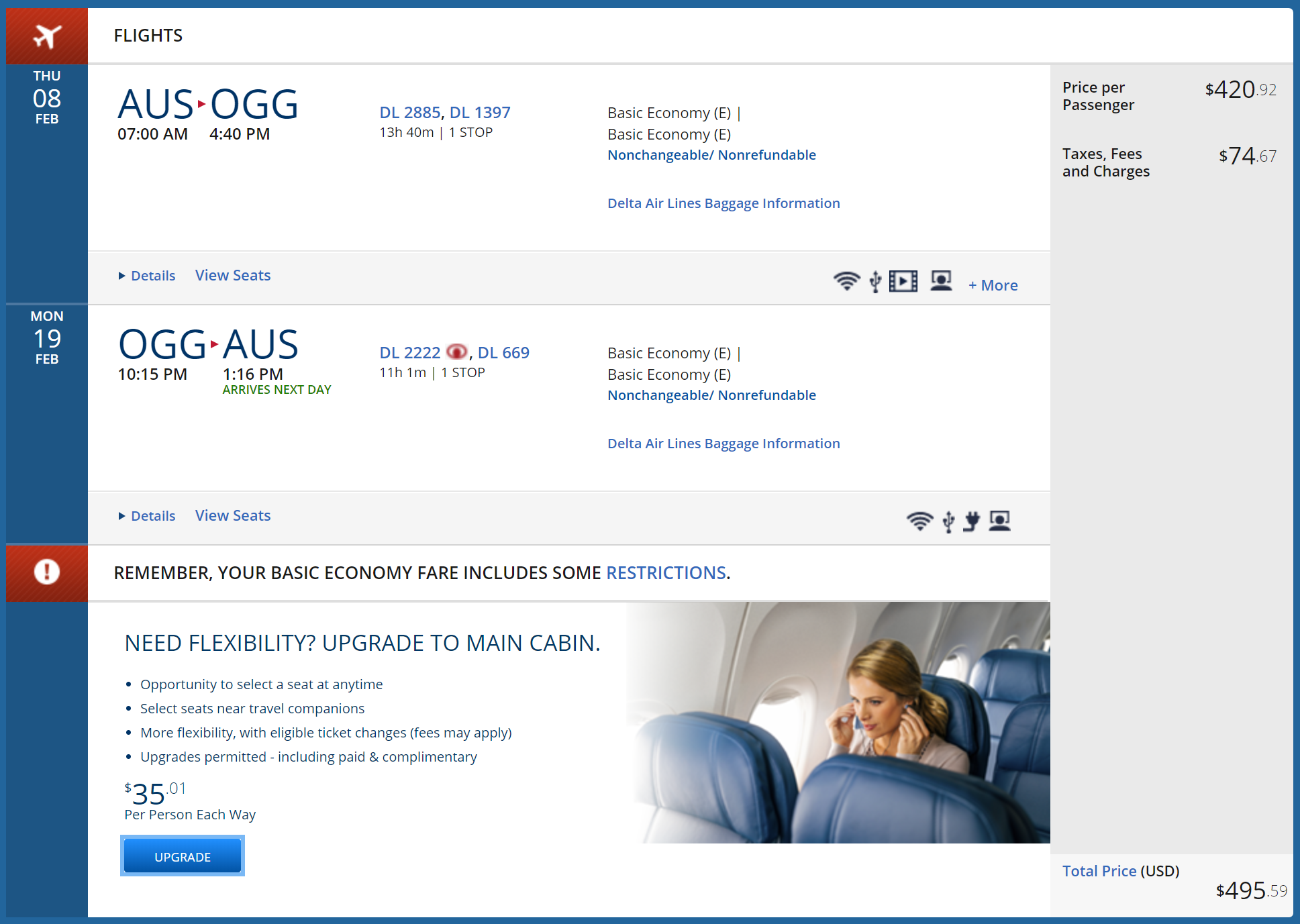 Austin (AUS) to Kahului (OGG) for $496 round-trip: