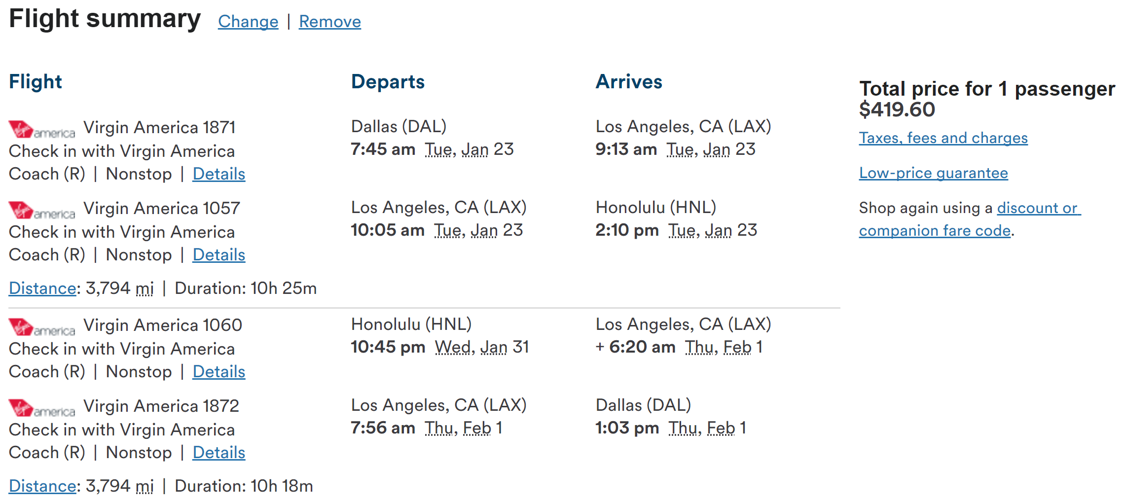 Dallas (DAL) to Honolulu (HNL) for $420 round-trip: