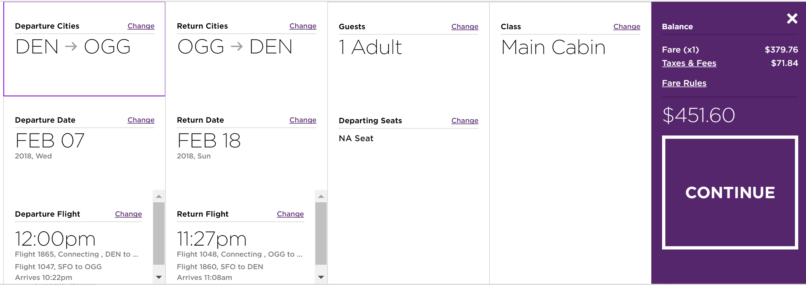 Denver (DEN) to Kahului (OGG) for $452 round-trip: