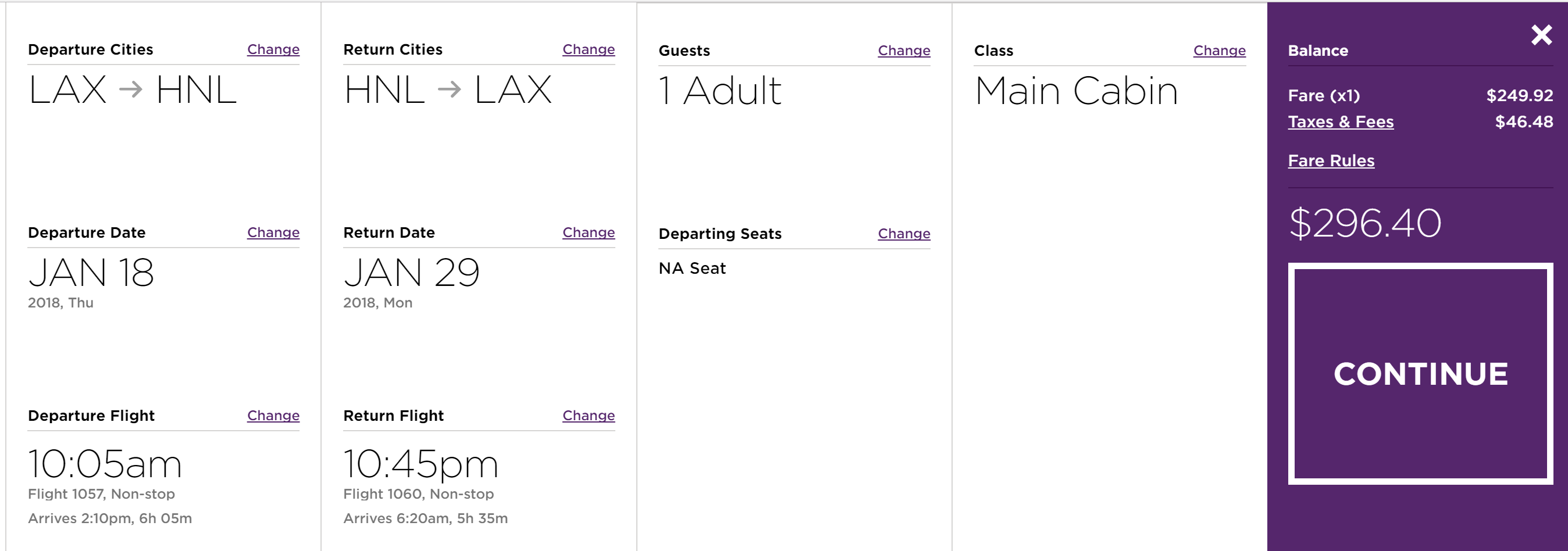 Los Angeles (LAX) to Honolulu (HNL) for $296 round-trip nonstop [or Kahului (OGG) for $337 round-trip nonstop]:
