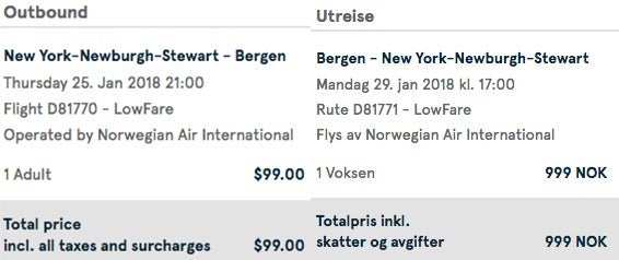 Availability is scattered for some cities — head to Google Flights and enter your origin and destination cities. Then, scroll through the calendar function to find dates that work best for you. Finally, click through to book with the airline itself. Note that some itineraries will require you to book tickets as separate one-way flights and the return ticket may have to be purchased through the Norwegian version of the website.