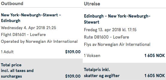 Newburgh (SWF) to Edinburgh (EDI) in April for $301 round-trip: