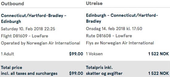 Hartford (BDL) to Edinburgh (EDI) in February for $281 round-trip:
