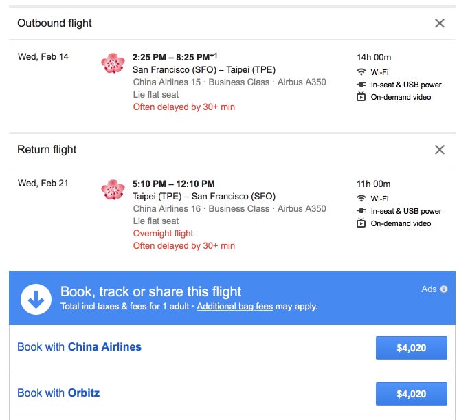 Given the airline's very low economy fares, however, choosing a family couch over premium business class seats is still economical on many flights this February. For instance, a family couch would cost a single passenger $3,010 round-trip between San Francisco (SFO) and Taipei (TPE) this November. A business class seat on the same flight prices out near $4,020.