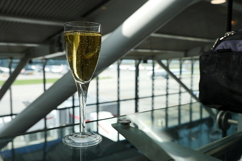 I was most interested in the yogurt-covered honeycomb available at the bar. I had this with a glass of the champagne, which was brought to me promptly at my seat, where I was watching planes taxiing out.