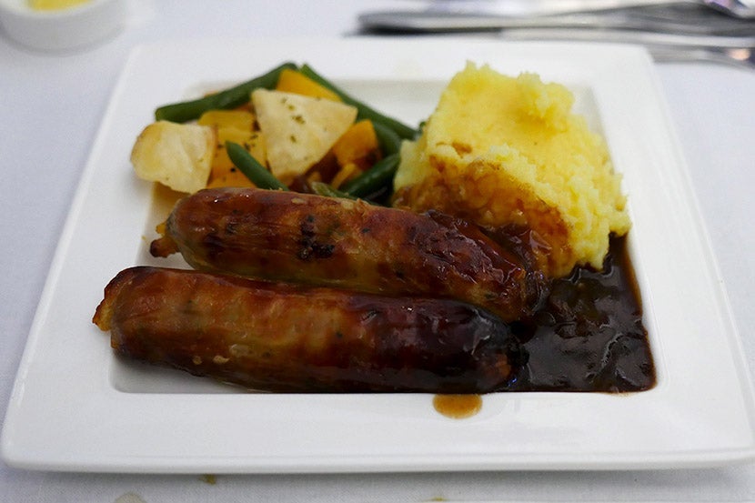 Menus offered two starters and four main options for lunch. I opted for the Cajun shrimp and the sausage and mash. Interestingly, the menu followed a Louisiana theme with items like gumbo, a nice touch that you won't spot on other BA routes. The food was quite reasonable.