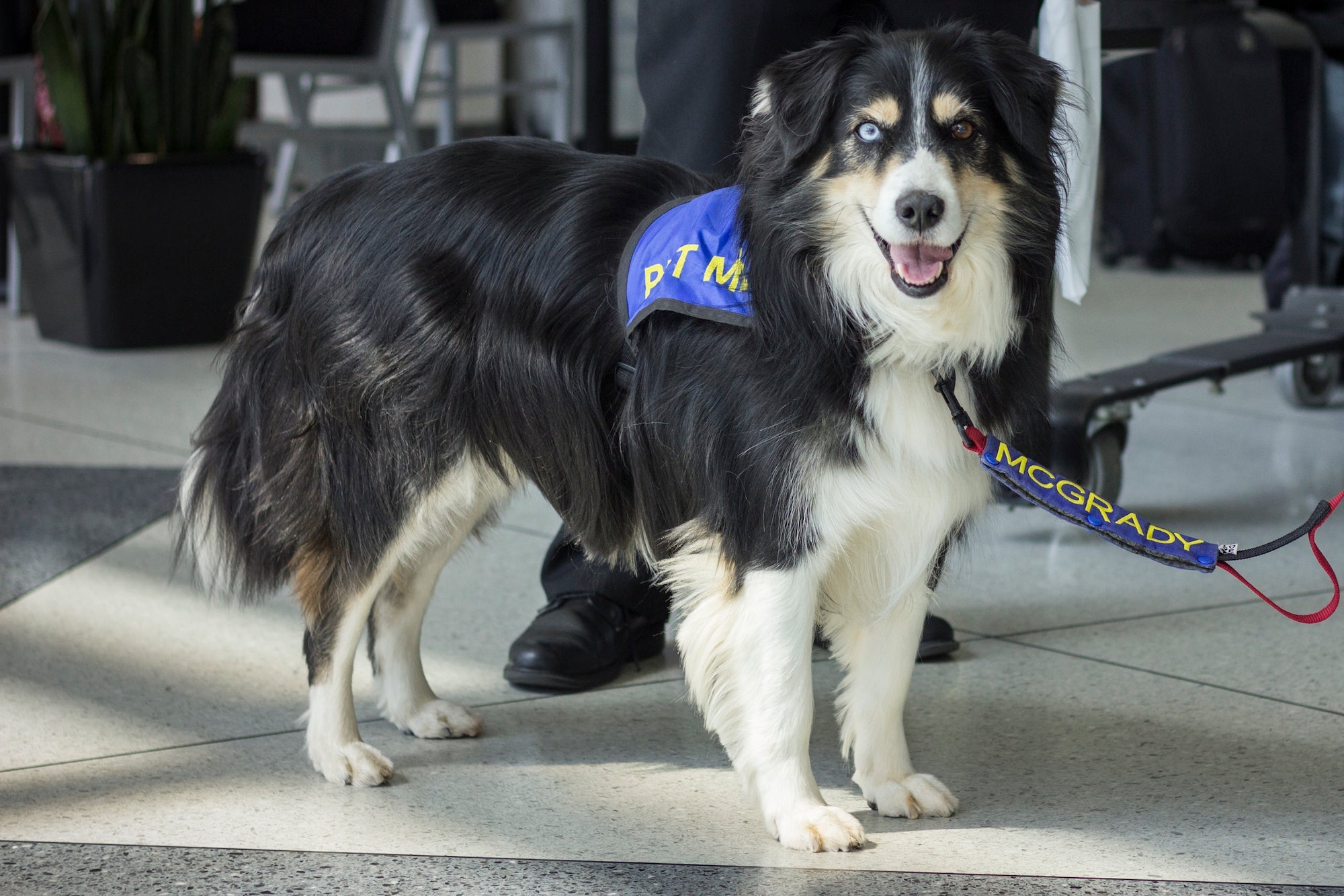 "McGrady is extra special," says Lauri Golden of the Australian Shepherd. Image courtesy of Charlotte Douglas International Airport.