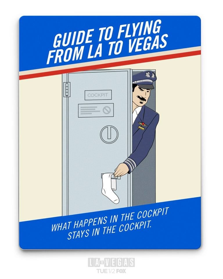 Oh, never mind. It is surprising a version of that joke hasn't shown up in the first two episodes of the new FOX sitcom LA to Vegas — hokey cliches about the destination city abound. But there are also a few inside jokes that frequent fliers might appreciate in this workplace comedy that takes place on the fictional Jackpot Airlines' hourlong trip from Los Angeles to Las Vegas.