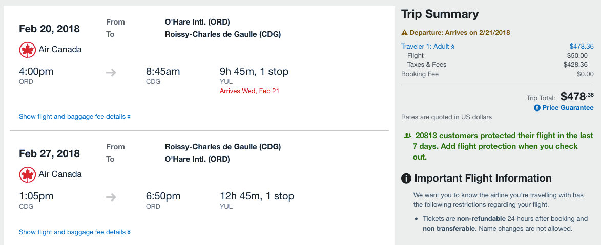 Chicago (ORD) to Paris (CDG) for $478 round-trip via Orbitz: