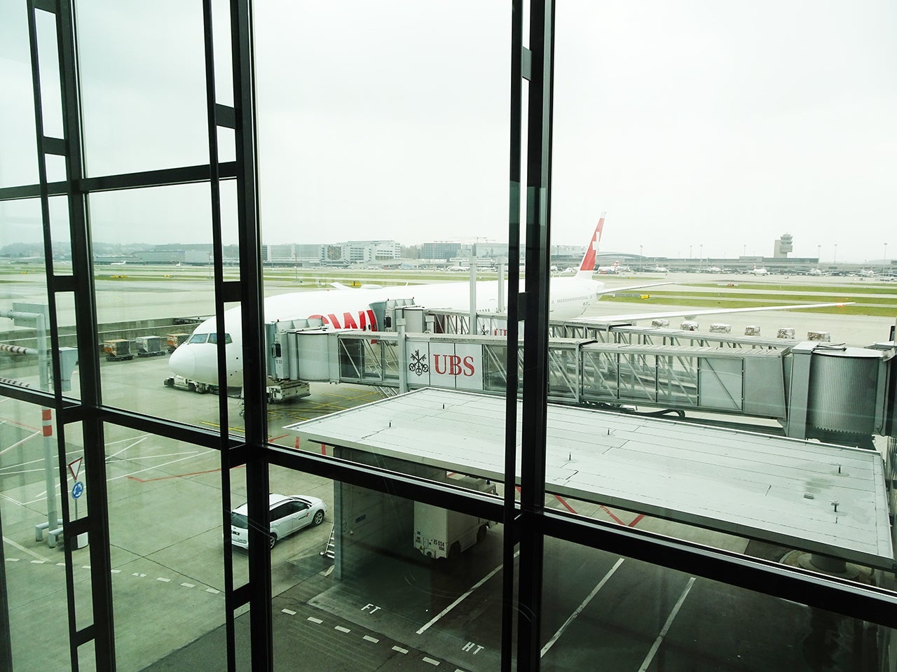 I got to the gate at 12:20. Nothing was happening and I wished the departure monitors hadn't instructed me to go zum Gate, to the gate, because I could have used the extra time to get a snack. On the upside, Zurich airport Wi-Fi is provided for free for two hours and it worked great. It was easy to sign in using my Boingo Wireless credentials (a handy perk of the Amex Platinum.) The very friendly gate agent said I still had the three empty seats next to me on the flight. Our 777, tail number HB-JNE, was waiting. It had been delivered in June 2016 and was therefore just 17 months old.