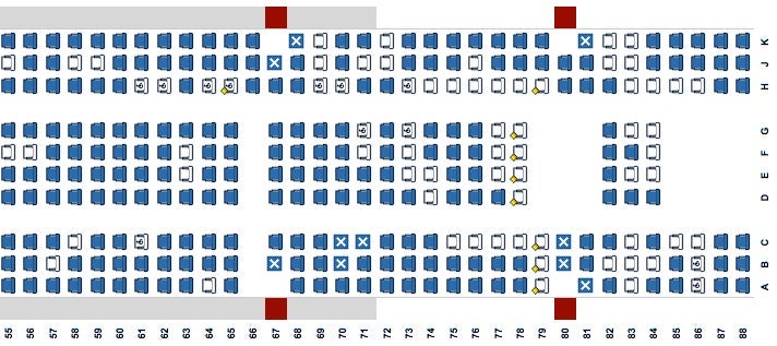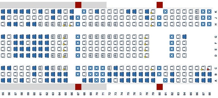 Still, the closer you are to departure, the more accurate a seat map is likely to be. Here's the current seat availability for tonight's (Tuesday) flight from New York according to ExpertFlyer — seats in white are empty: