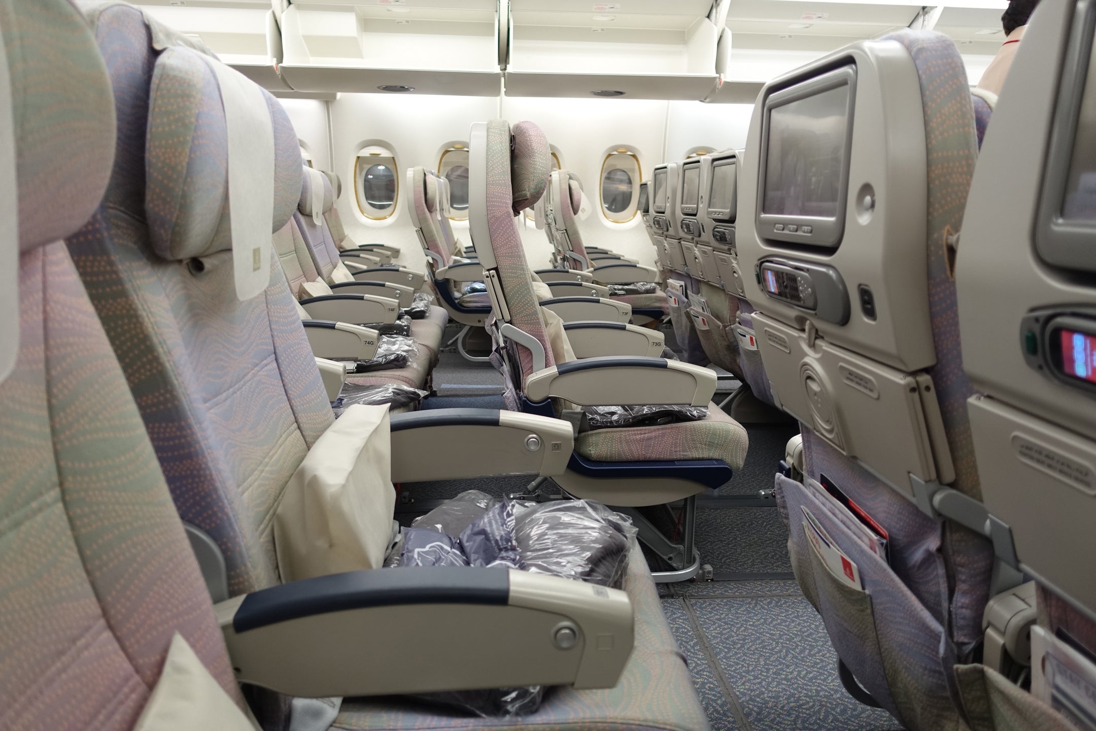 As you can see, you can't guarantee yourself an empty flight, and in the summer things will definitely pick up. But Emirates economy class is actually one of the better choices for transatlantic travel in any case. Seat pitch is 32" with a relatively comfortable 19" width from armrest to armrest (22" width for the seats themselves). So if you're considering flying in economy, Emirates' A380 is a solid choice to begin with.