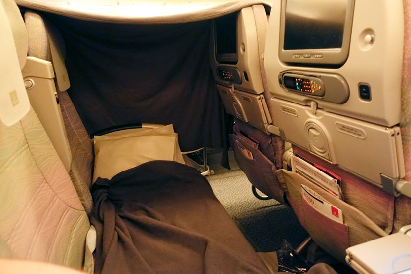 After I was done eating, I was able to create my very own Emirates economy class "suite" by draping a blanket at the end of my row to keep me closed off from the ham 'n' eggers in the rest of economy.