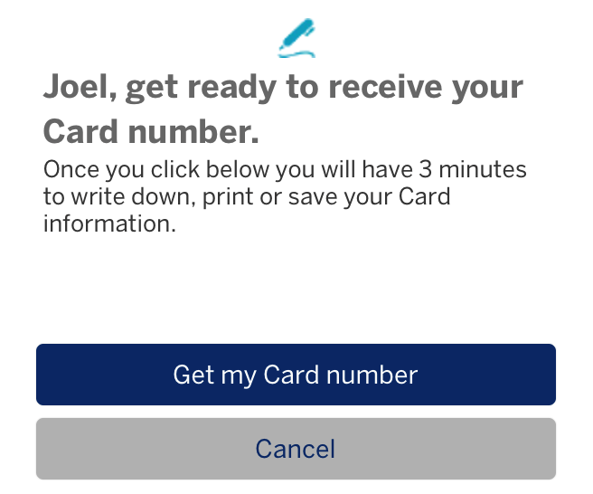 As it turns out, Joel was instantly approved, and was presented with the option to view his card number right away.