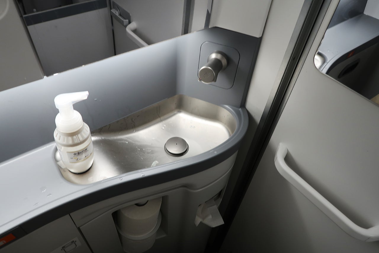 I took these flights the same day I published an article about American Airlines flight attendants complaining about the 737 MAX bathrooms. So, the aircraft bathrooms were definitely on my mind when I boarded. There were two of my main questions that I wanted to answer: How small are the first class bathrooms? And, were the bathroom sinks actually fixed?
