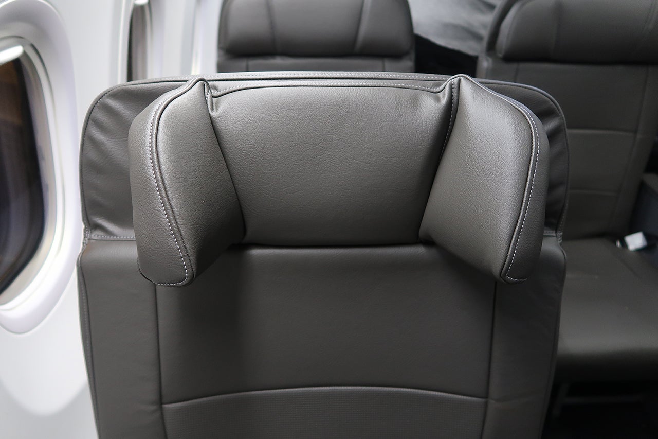 If you're looking to take a nap on the hopefully-short flight, the seats have a moderate recline and foldable headrest wings to support your neck.