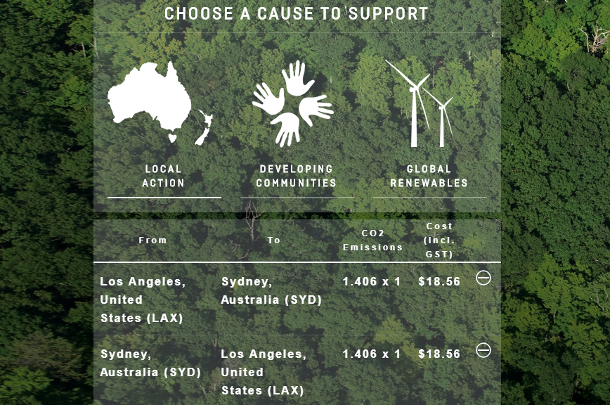 To offset a round-trip flight between LAX and Sydney (SYD) a donation of AUD 37.13 ($25) is recommended.