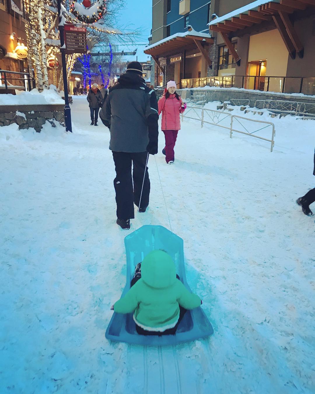 In Whistler, since there is a village where everything is pretty much walkable, being located in a prime spot where you never need a car is also very special. Of course, it is still helpful to pick up a sled at the local village hardware store to haul your toddlers to dinner!