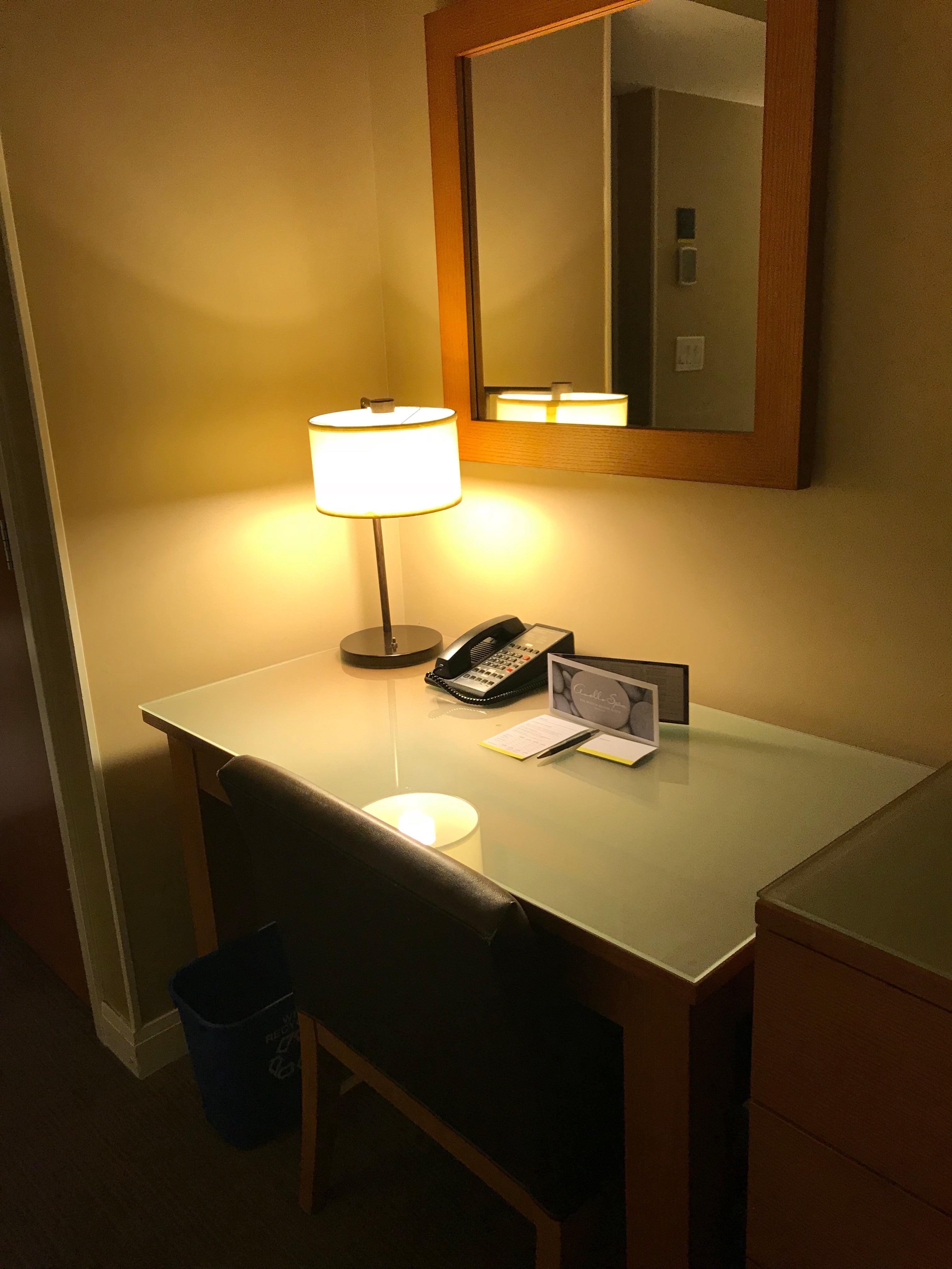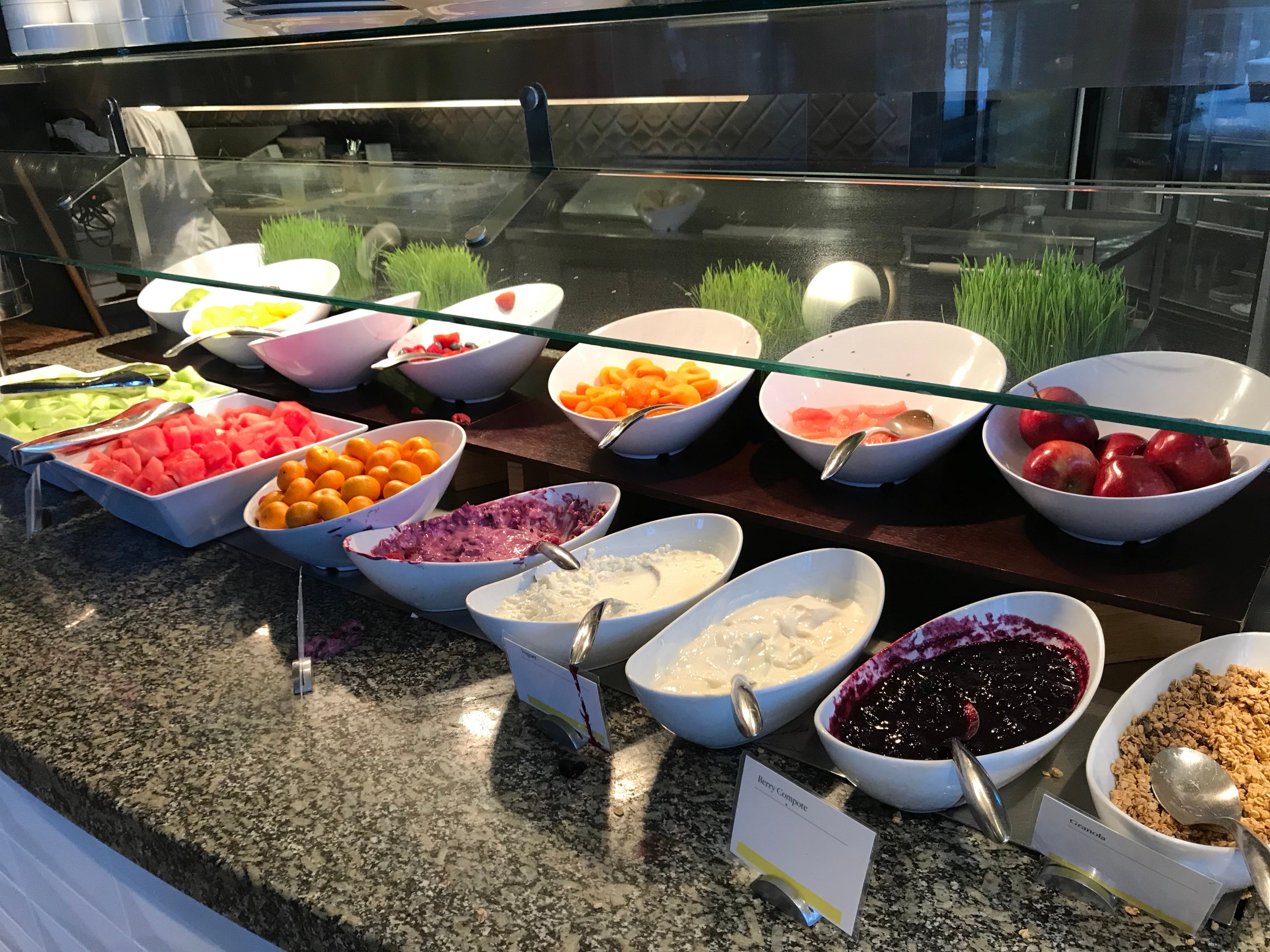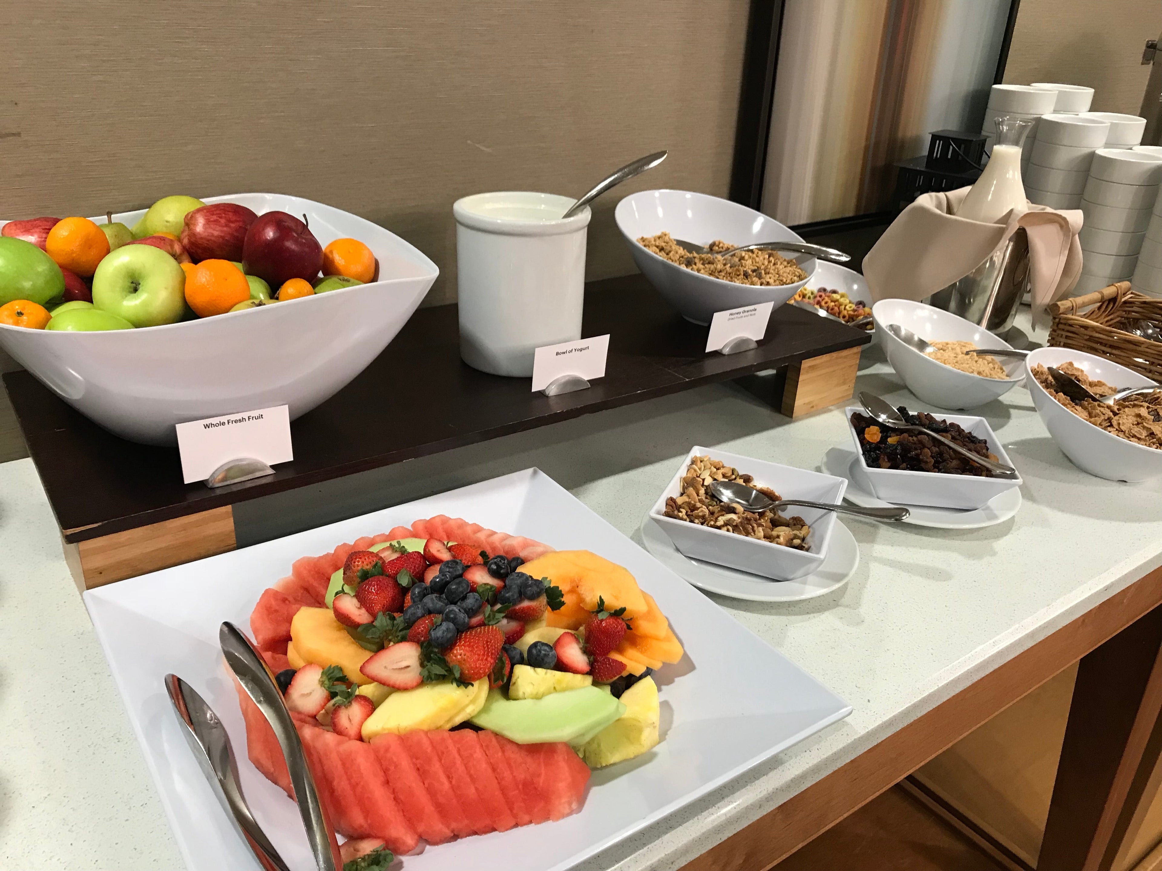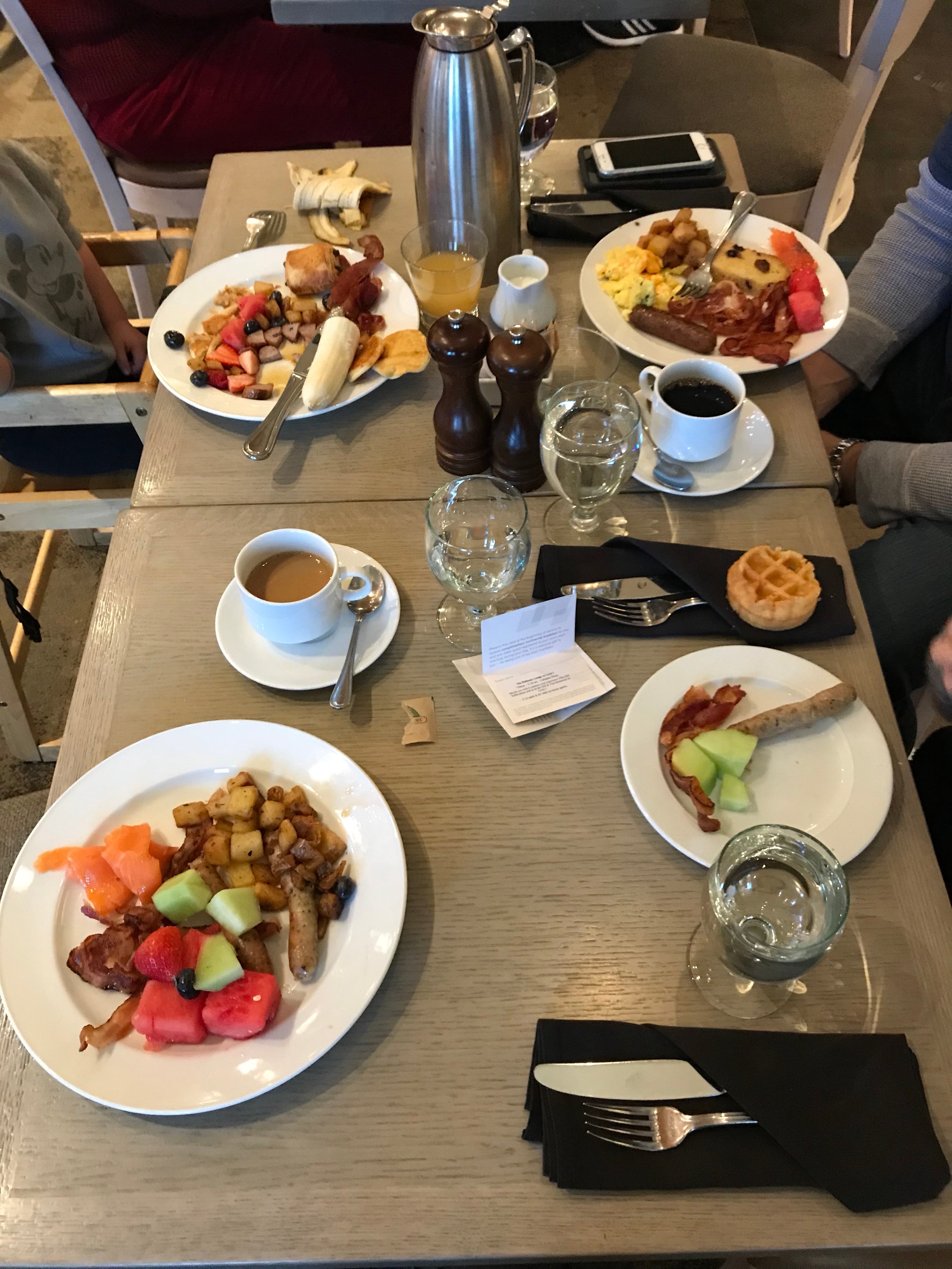 You can fly here on miles and stay on points, but food costs are a very real expense. A relatively modest dinner out in the area for the four of us was often close to $100 no matter what we did. Lunch was at least half that if we didn't make it ourselves, and even the "free" breakfast can easily be close to $50 for a family of four if you aren't careful. My Marriott Platinum status got us complimentary continental breakfast in the hotel's temporary Platinum Lounge or in the restaurant, Grill & Vine.