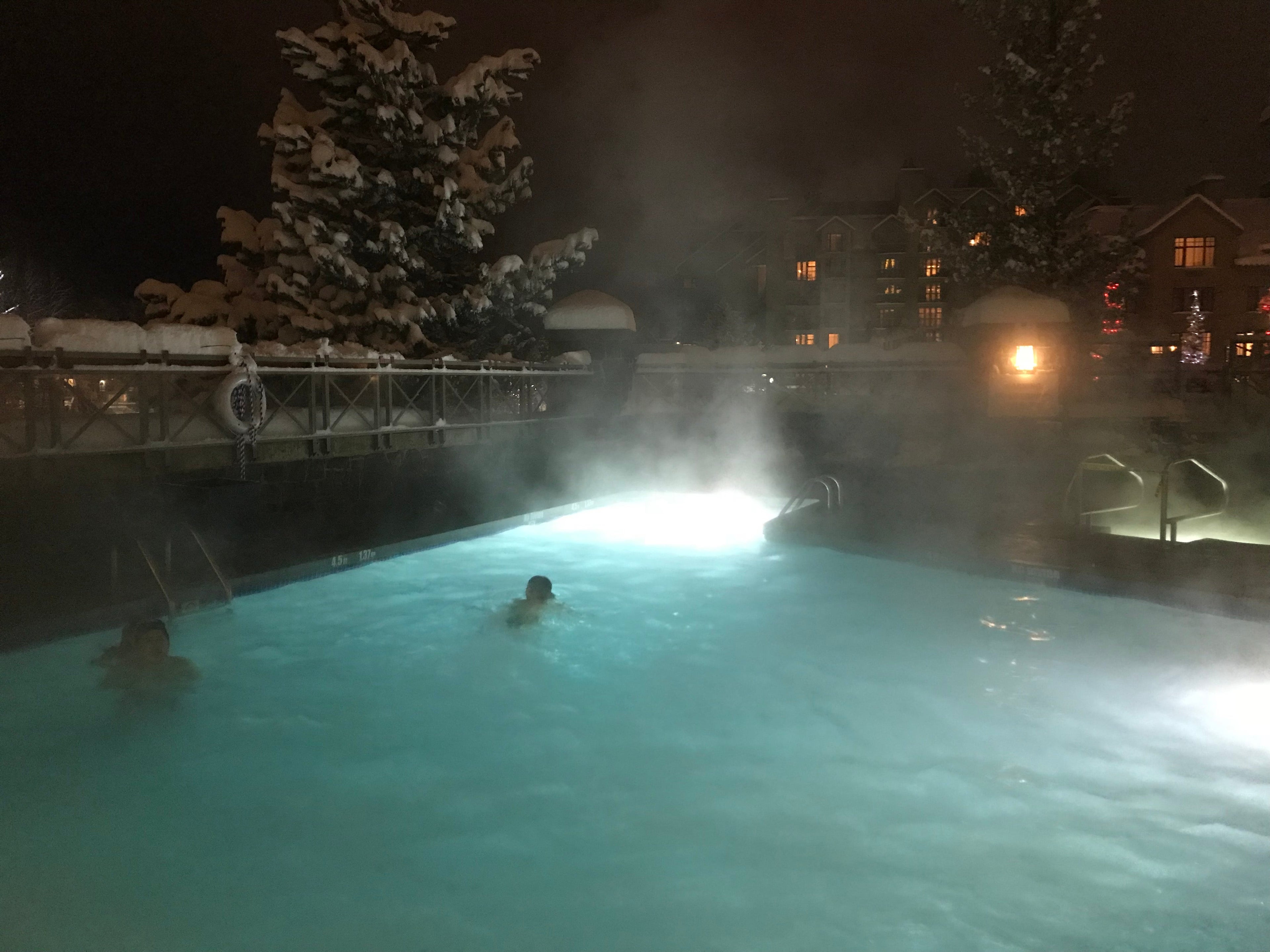 The one amenity at the Westin Whistler that I did not enjoy four years ago and still did not enjoy today was the pool. On first glance, it looks fine, but I am not a fan. The pool has an indoor entrance and then expands into the outdoors. That seems like a great idea since it is quite cold to get in, but the indoor portion has standing water everywhere, is very crowded, very steamy/musty, and the pool water itself is far too cold for this Texas girl. The indoor hot tub portion (not shown) would be full at about 4 - 6 people, but it consistently has at least double that number making it way too full to be enjoyable.