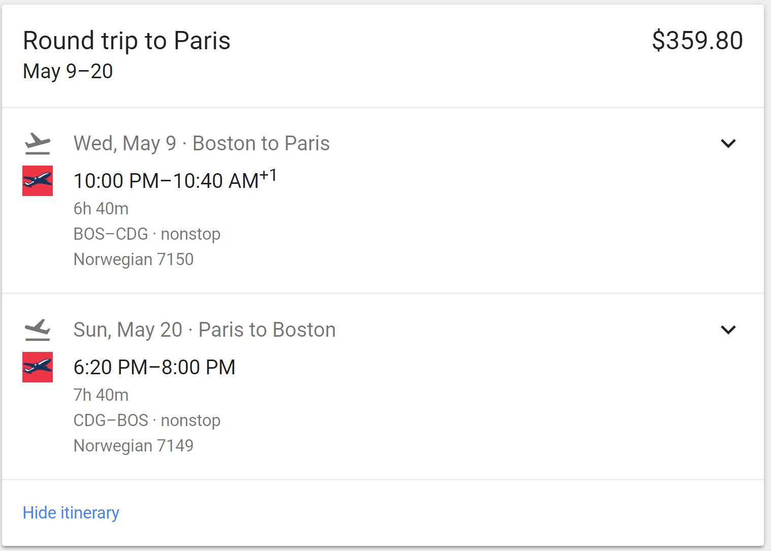 Boston (BOS) to Paris (CDG) for $360 round-trip nonstop on Norwegian: