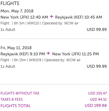 New York (JFK) to Reykjavik (KEF) for $200 round-trip on WOW: