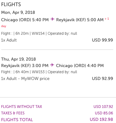 Chicago (ORD) to Reykjavik (KEF) for $193 round-trip on WOW: