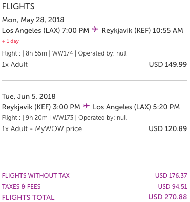 Los Angeles (LAX) to Reykjavik (KEF) for $271 round-trip on WOW: