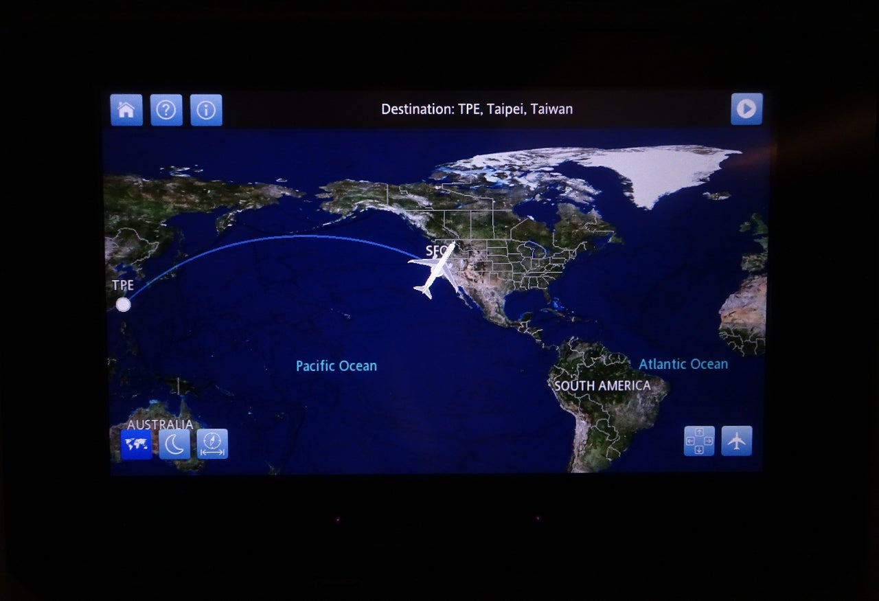 The tray was cleared quickly and we had a super-smooth touchdown in Taipei at 8:12pm local time. We arrived to the gate at 8:18 (28 minutes later than originally scheduled) and I was off the plane five minutes later.