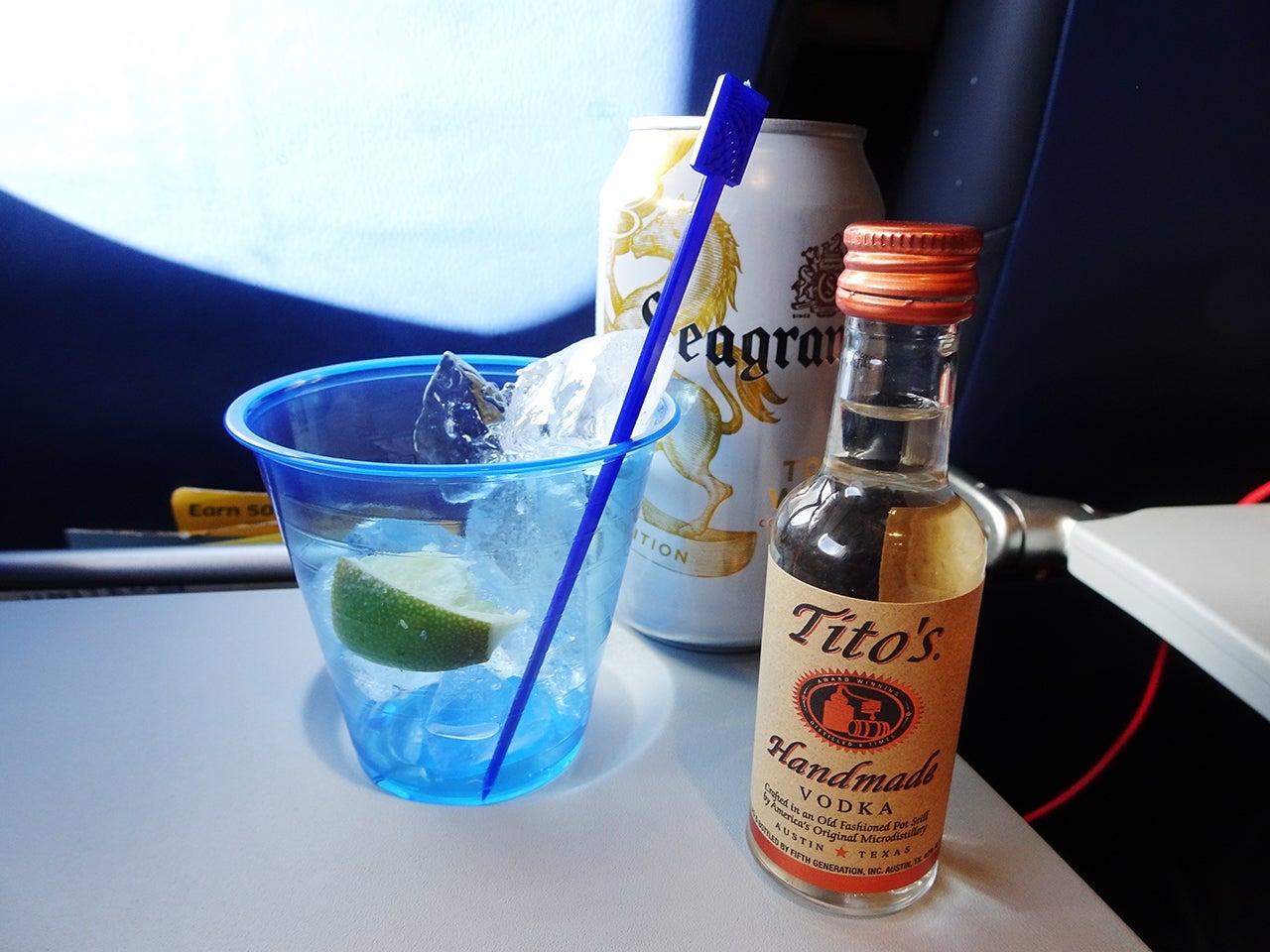 10 minutes later came drinks. Select wine and beer was complimentary but I also received a Tito's vodka without charge.