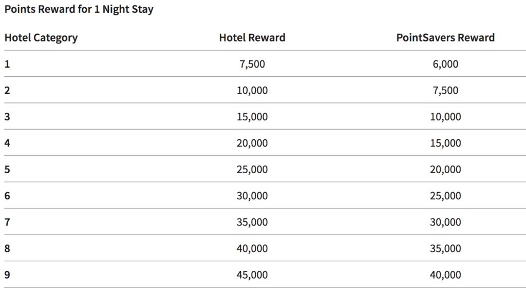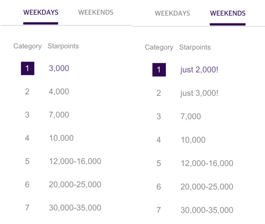 As a reminder, here's how many Starpoints it'll cost you to redeem for a free night at each category level: