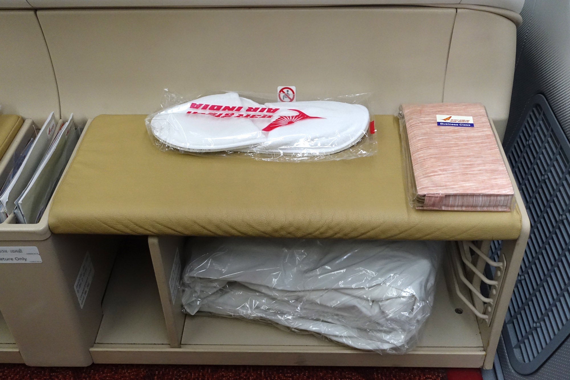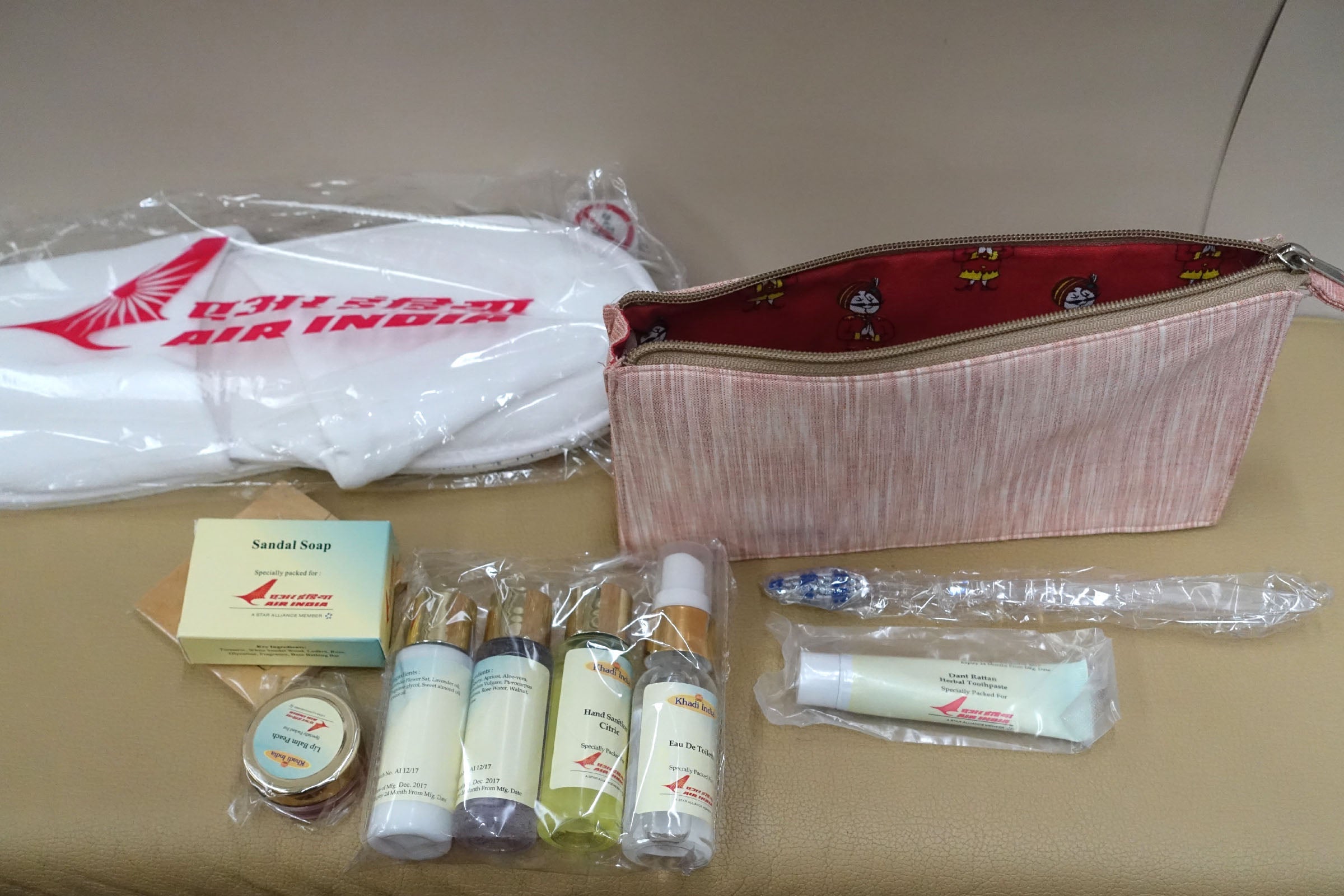 I ended up getting the same well-stocked, if not slightly bizarre, amenity kit as on my 777 flight from Delhi — along with a pair of slippers.
