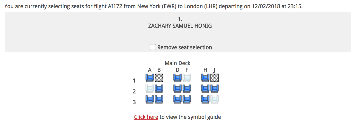 While AA and Delta offer a superior product, with 1-2-1 seating on some flights, Air India's small 2-2-2 business-class cabin seemed to be wide open at booking, so I was also hopeful that I'd have a semi-private experience, and a good night's sleep.