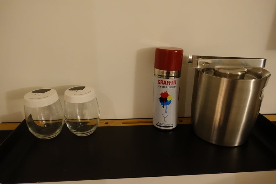 In general, the room was practical, with plenty of outlets (both USB and regular power outlets), the coffeemaker and blackout shades, but also with fun millennial-oriented touches such as a spray-can cocktail shaker.