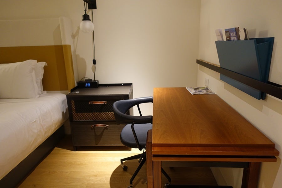 Thanks to the adjustable exposed bulbs on either side of the bed, the room was full of light even when the natural light of the day was gone.
