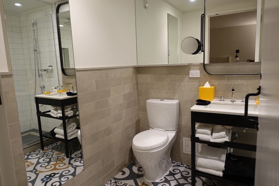 The shower pressure was strong and the water hot — what more can you ask for? The bathroom also featured several mirrors, one of which was full-length — necessary for a night out in downtown Manhattan.