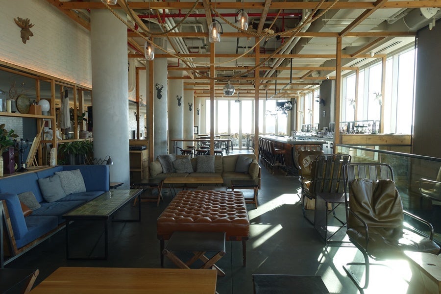 Meanwhile, I looked around, appreciating the high ceilings, vintage-chic furniture, exposed-brick walls and city views. I was definitely downtown.