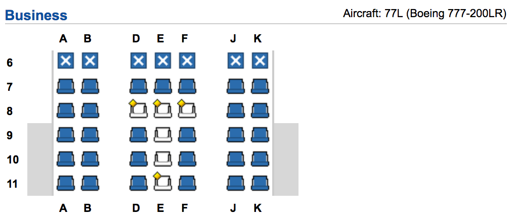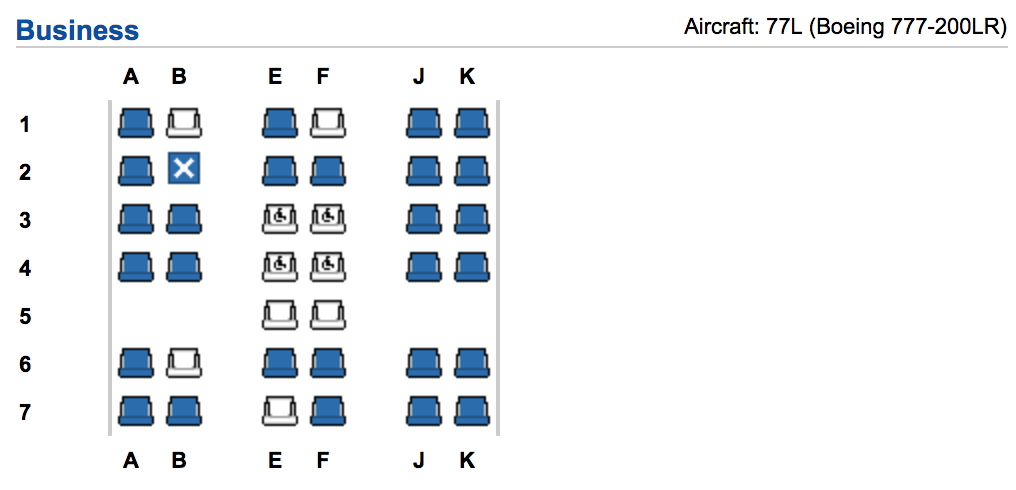 For now, tools like Google Flights are still showing the old angle-flat seats on all of these routes, regardless of which day you pick. Instead, you'll want to use Emirates' site or ExpertFlyer to confirm you have the new 38-seat 2-2-2 arrangement, which should look exactly like this: