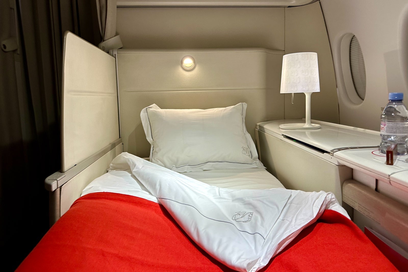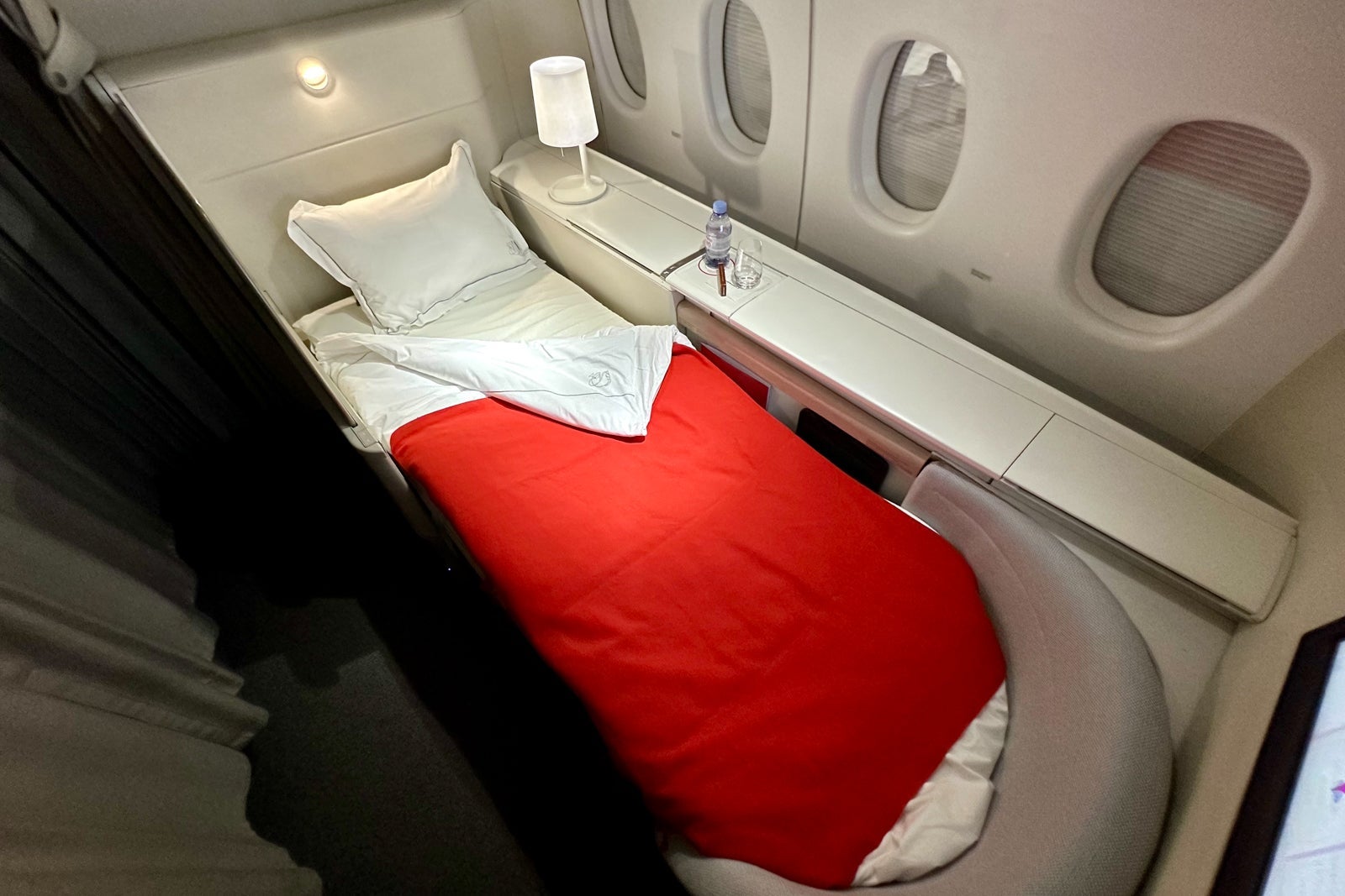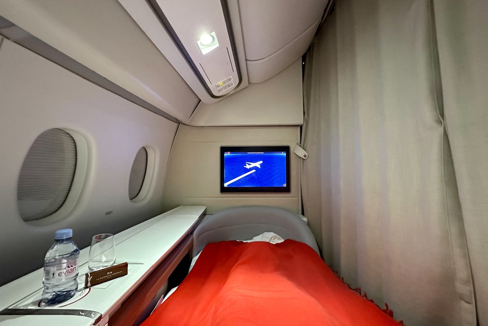 While the turndown service felt more like something I'd find at a Four Seasons hotel than on a plane, I was particularly impressed when Valerie proactively asked if the cabin temperature was too hot or too cold. She offered to adjust the thermostat to my liking — something that I very much appreciated, given that there aren't any overhead air nozzles in La Premiere.