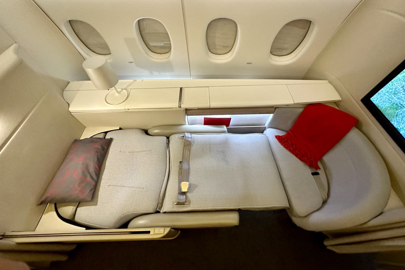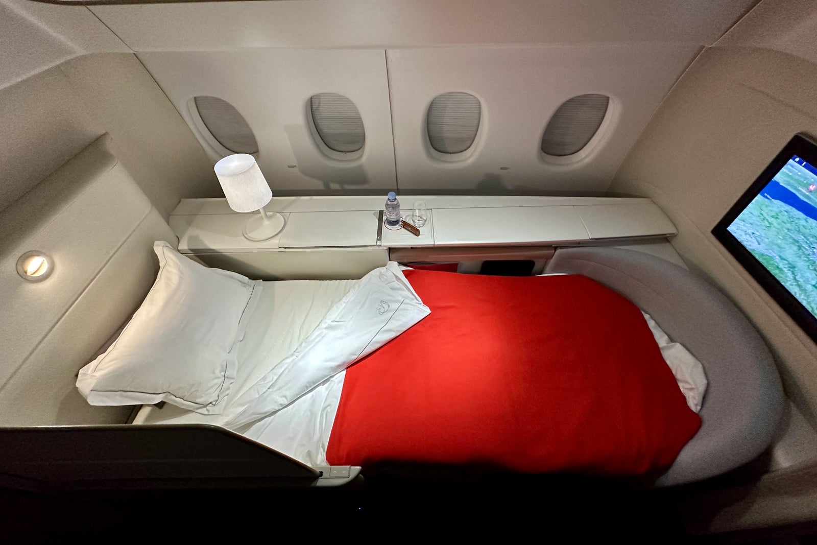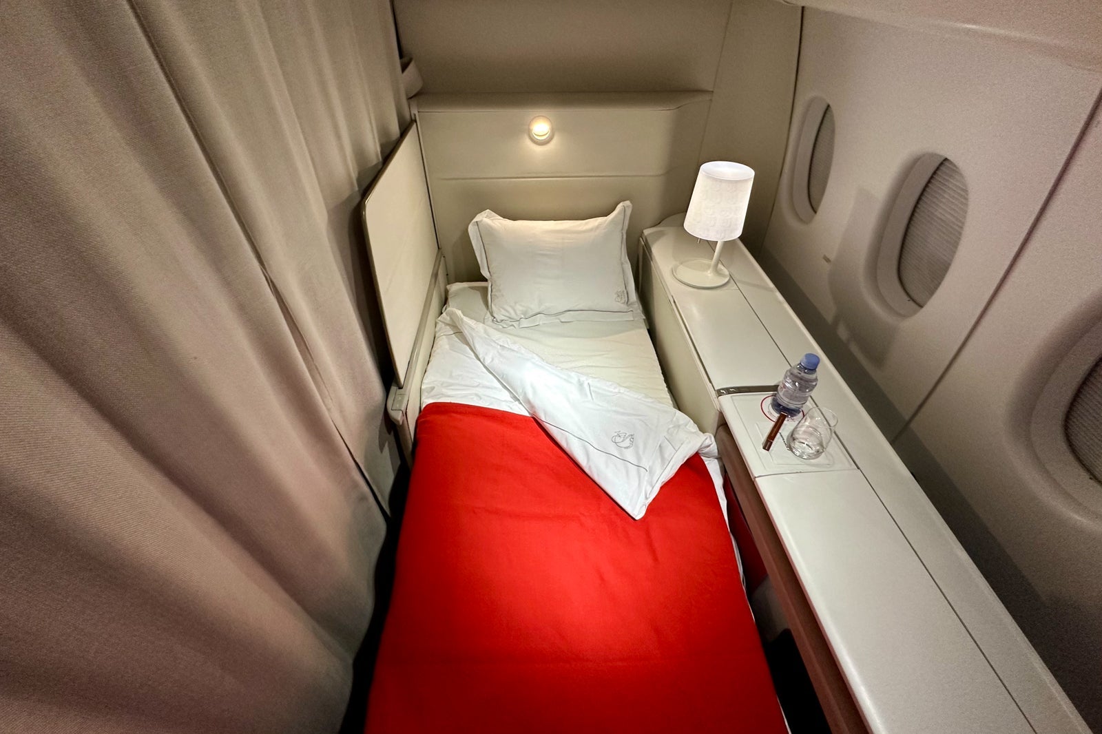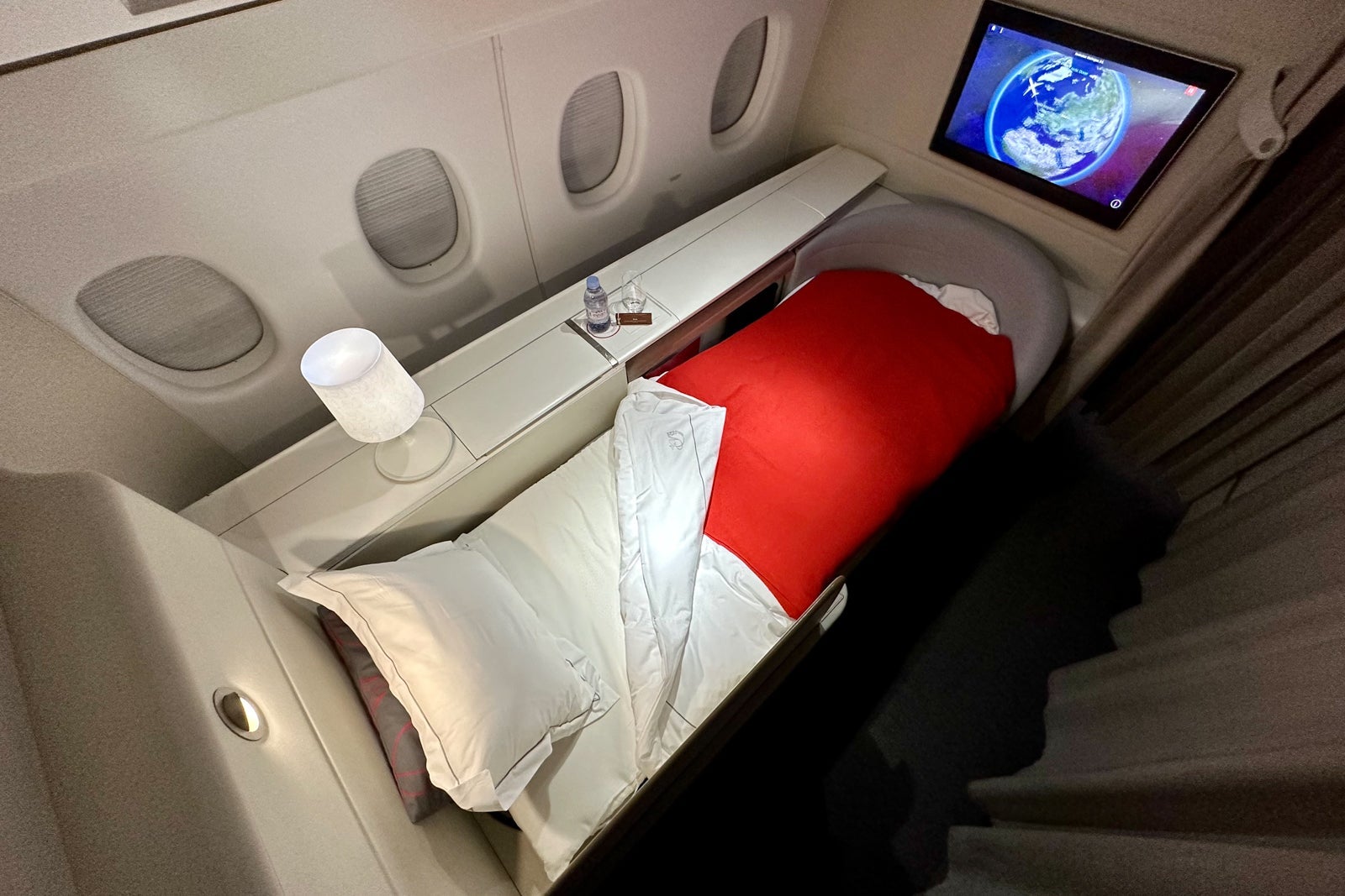 While the turndown service felt more like something I'd find at a Four Seasons hotel than on a plane, I was particularly impressed when Valerie proactively asked if the cabin temperature was too hot or too cold. She offered to adjust the thermostat to my liking — something that I very much appreciated, given that there aren't any overhead air nozzles in La Premiere.
