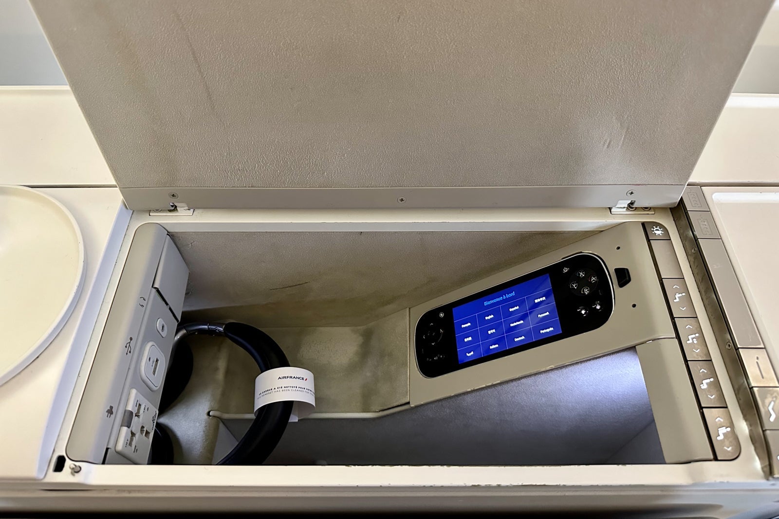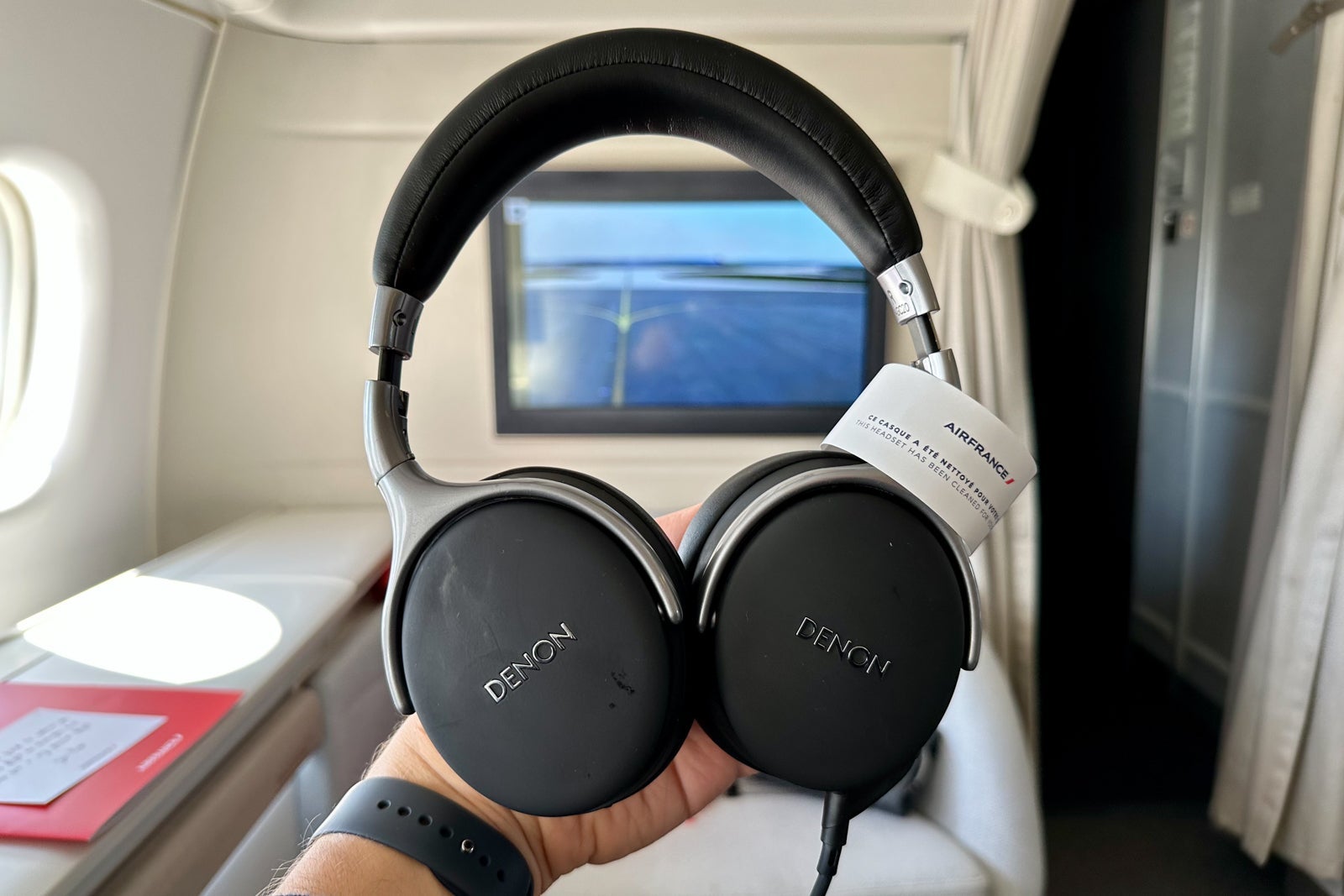 Just like Lufthansa, Air France pre-wires a pair of noise-canceling headphones into the seat and provides disposable headphone covers for added hygiene. These Denon-branded over-ear headphones were just fine, but I'd bring my own, possibly even AirPods Pro with a dongle, to use on board.