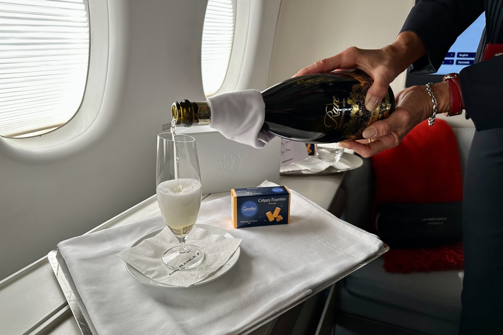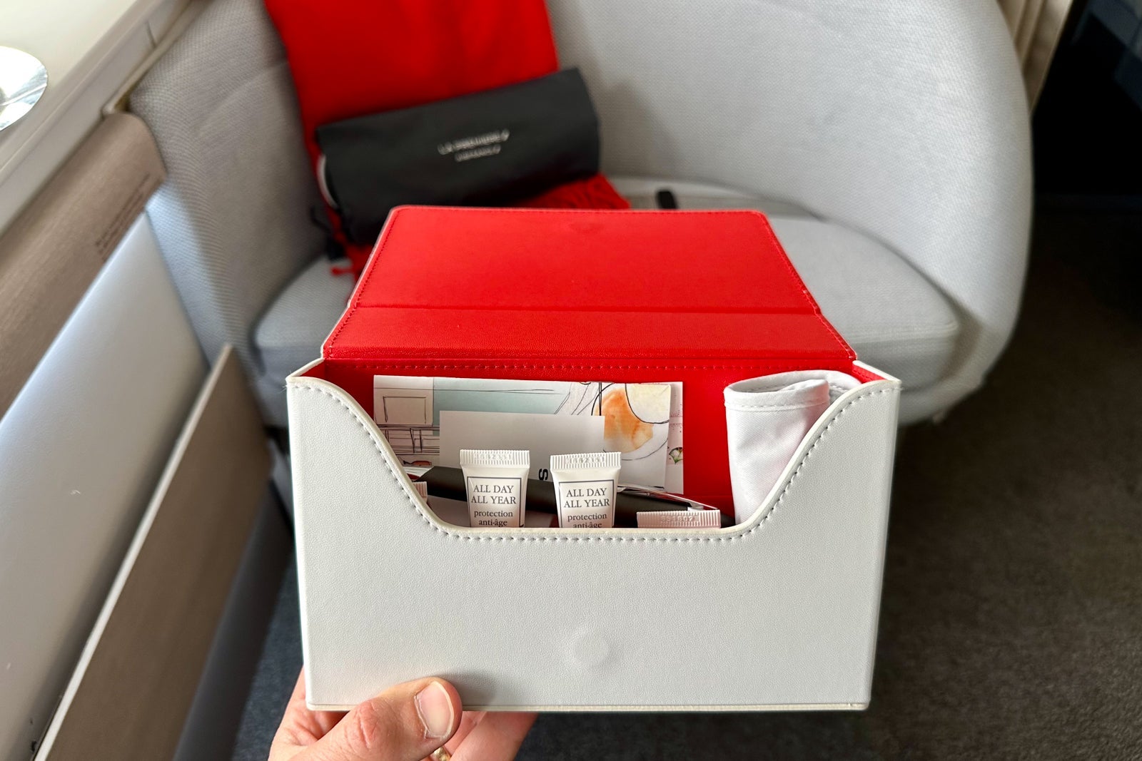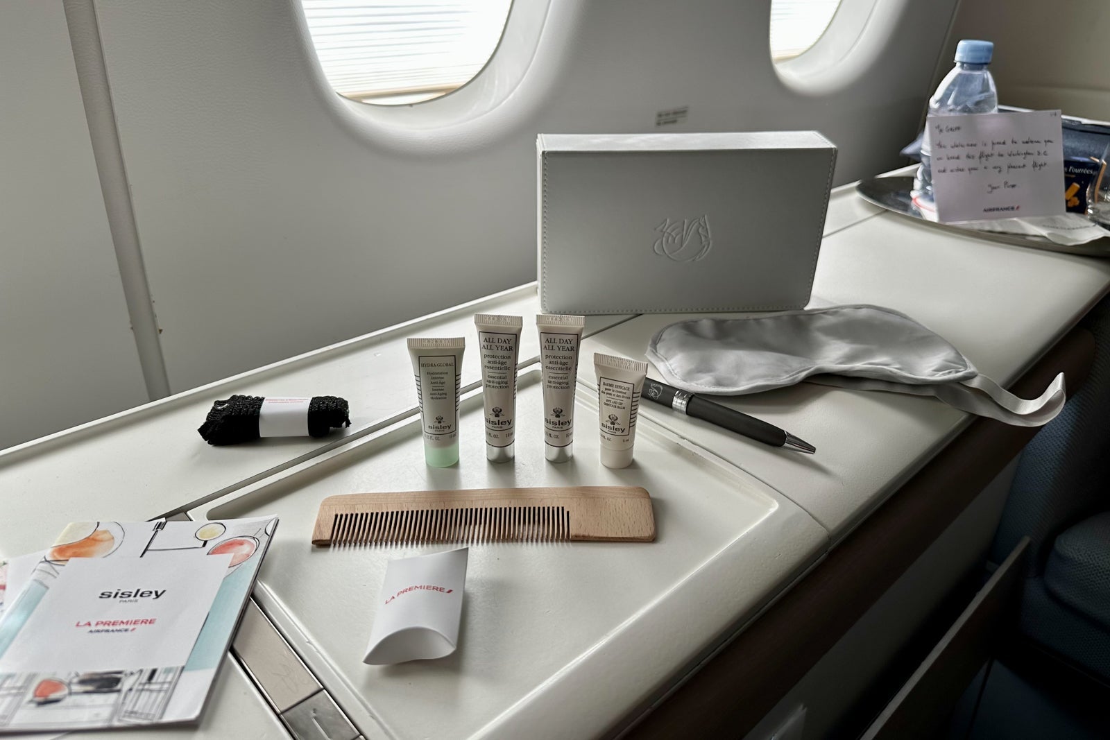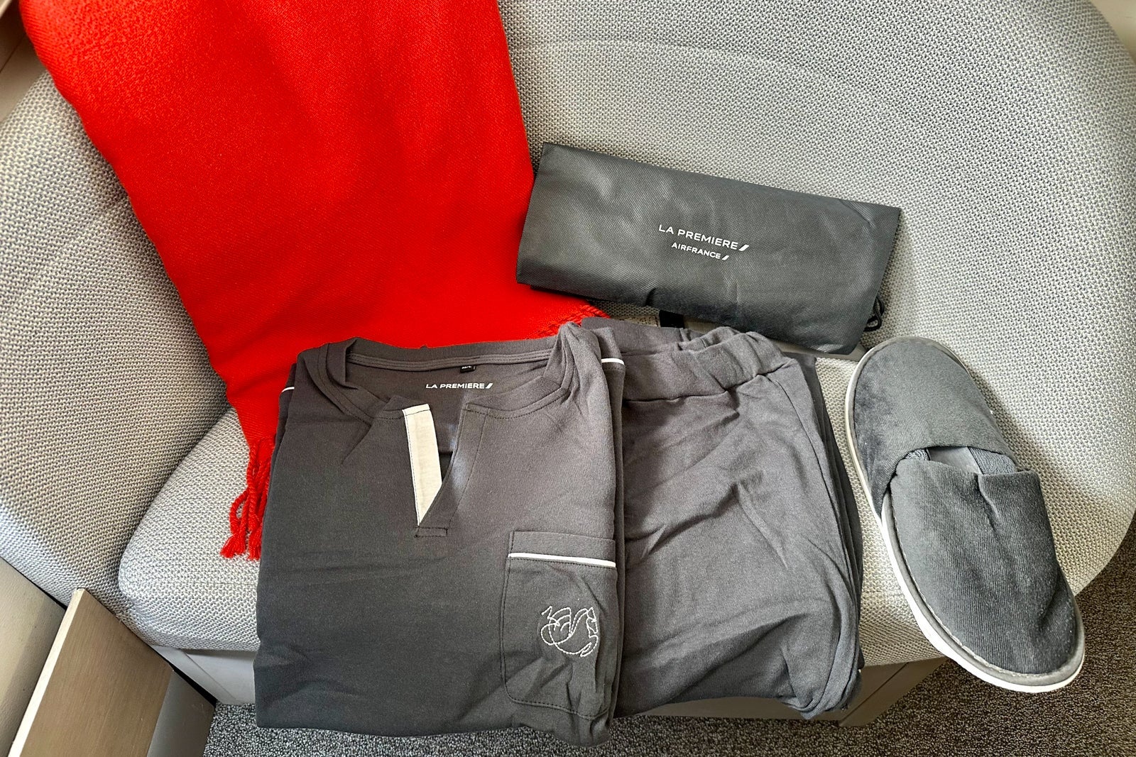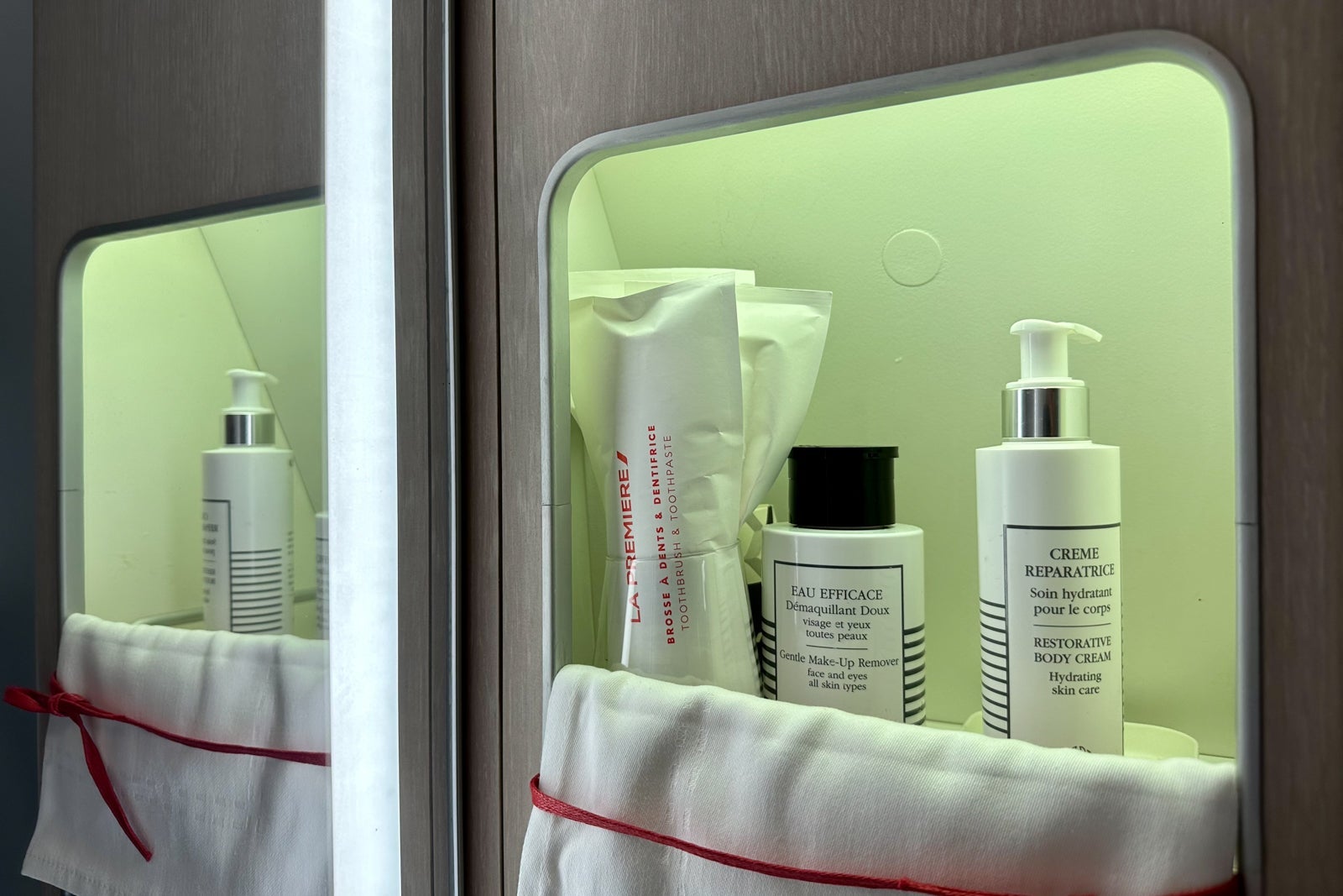 The first few minutes of any first-class flight should feel like Christmas in terms of the gifts you receive, and La Premiere was no exception.