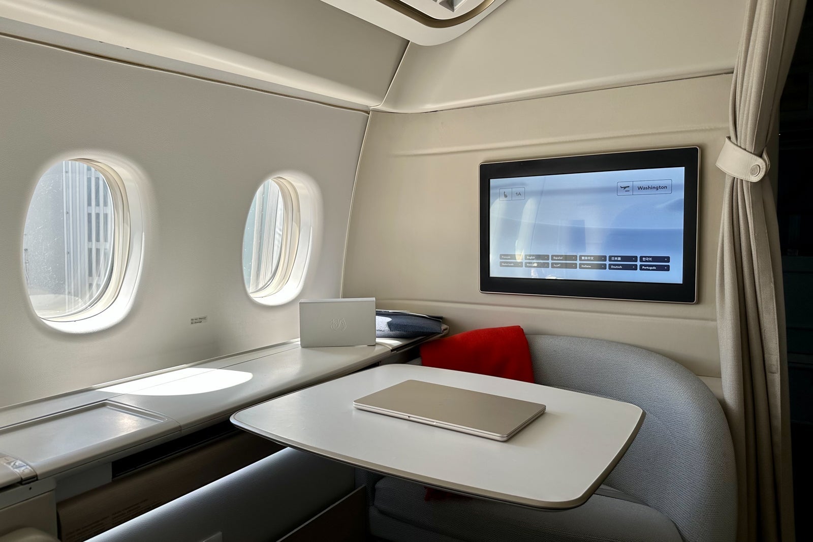 With just four seats in first class, you're guaranteed to enjoy a personalized experience. Want to have your meal after sleeping? No problem. Want to skip the entree and start with dessert? Again, not a problem.