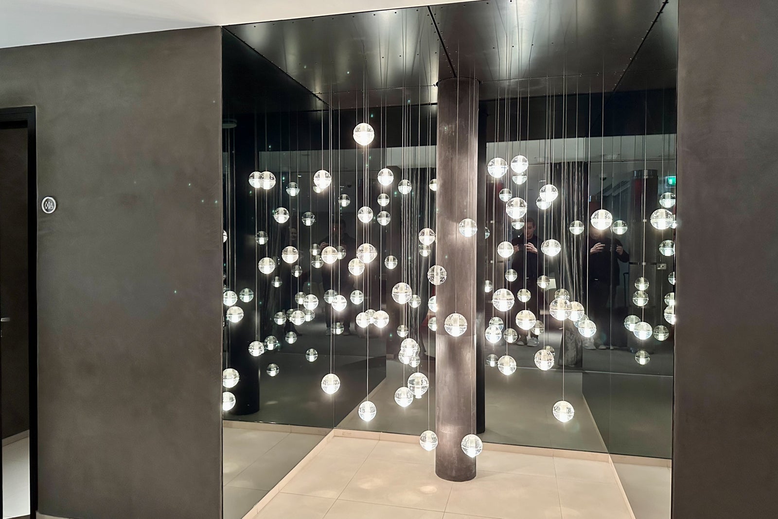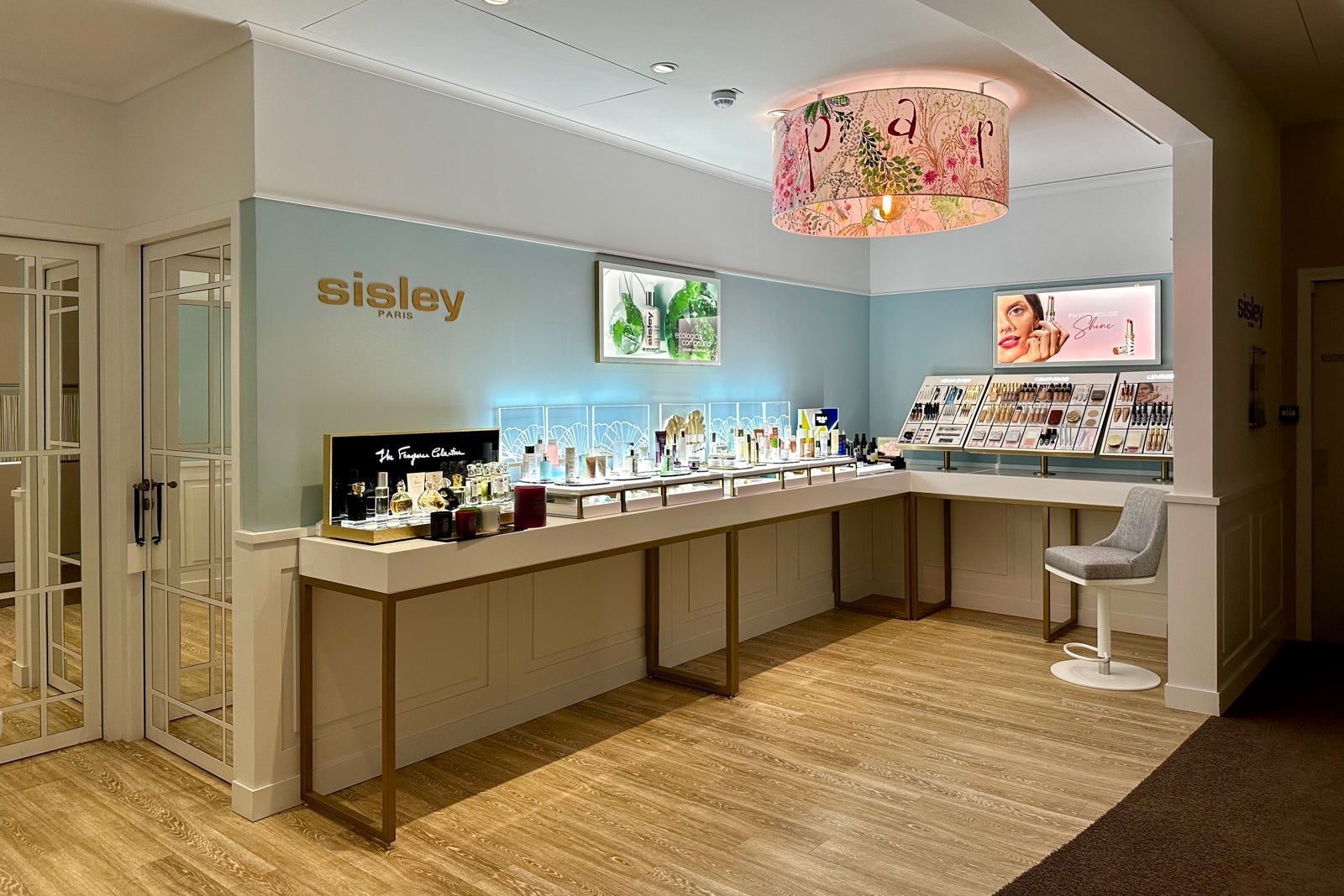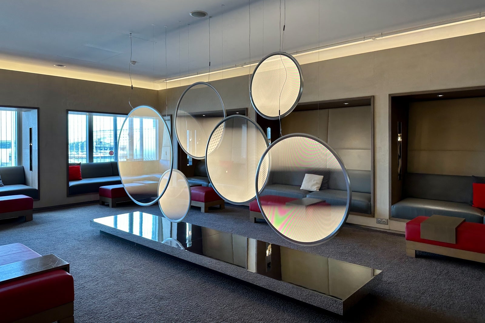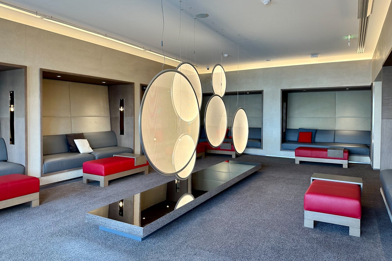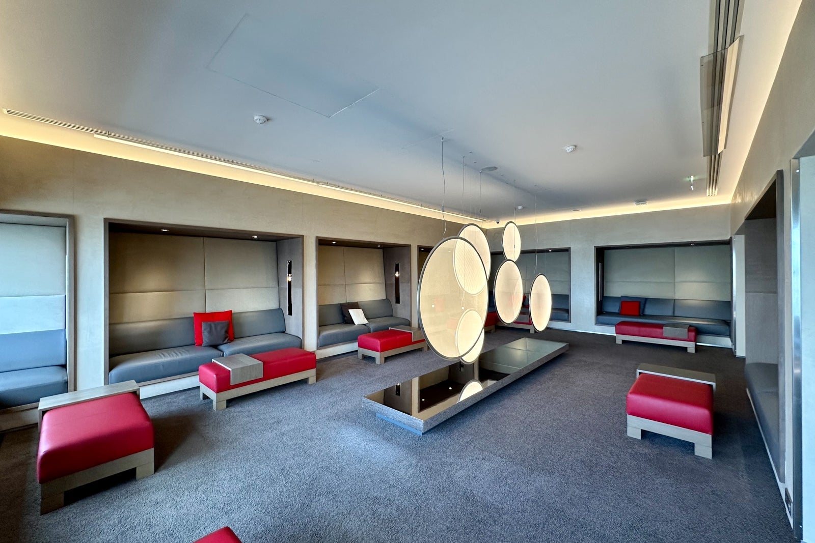 The rest of the lounge wraps around near the entrance. This includes separate men's and women's restrooms, a sleeping area, four shower suites and a Sisley-branded spa.